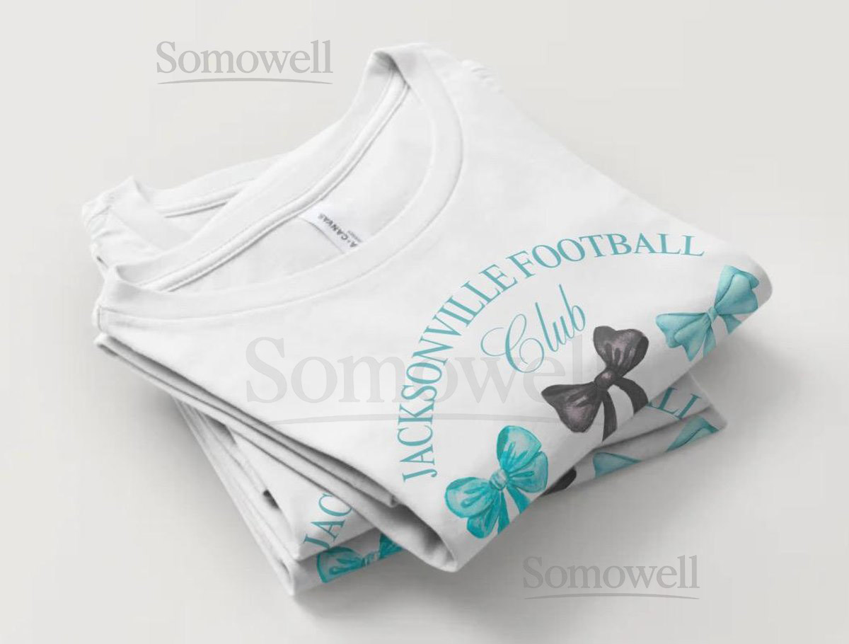 Jacksonville Football Bow Tee Teal Black Coquette Game Day_581