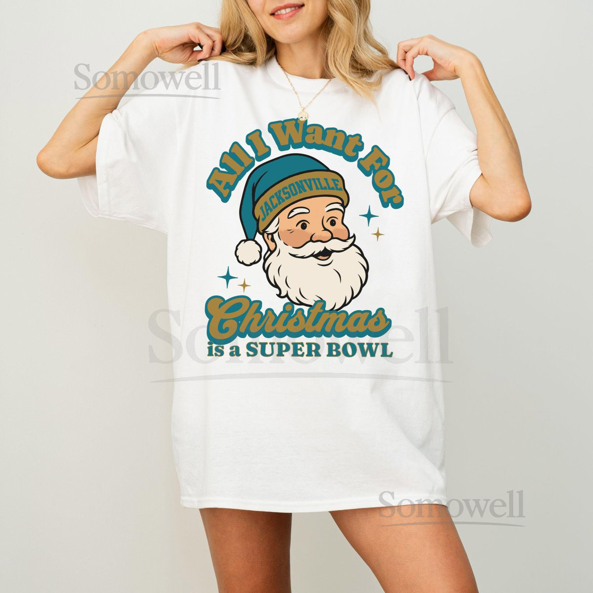 Jacksonville Football Christmas Super Bowl T-Shirt Retro Jaguar Football Tee Holiday Football Fan Shirt Festive Sports Apparel San_582
