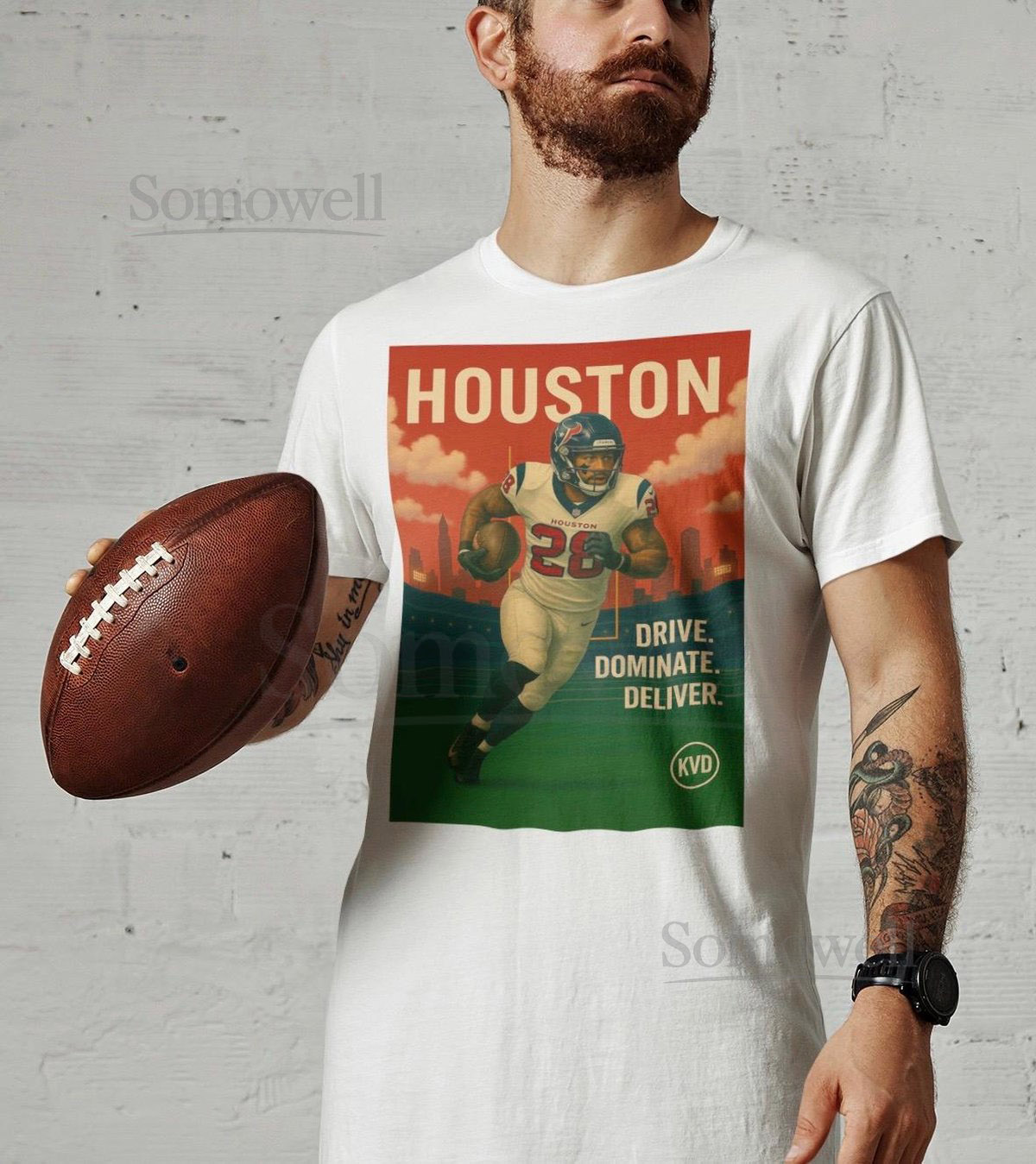 Houston Football Skyline T-Shirt quotDrive. Dominate. Deliver.quot Graph_253
