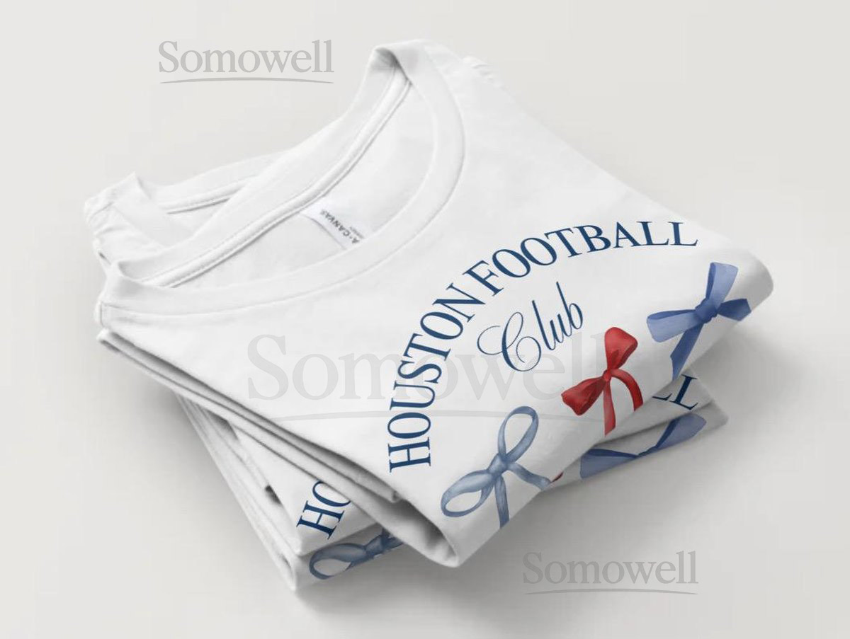 Houston Football Fan Tee Red Blue Watercolor Bow – Game Day_232