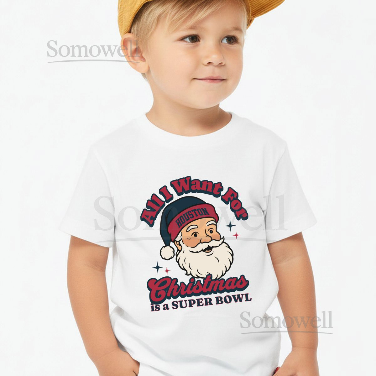 Houston Football All I Want For Christmas Is A Super Bowl T-Shirt Toddler Retro Texan Tee Holiday Santa Football Fan Shirt Game D_224