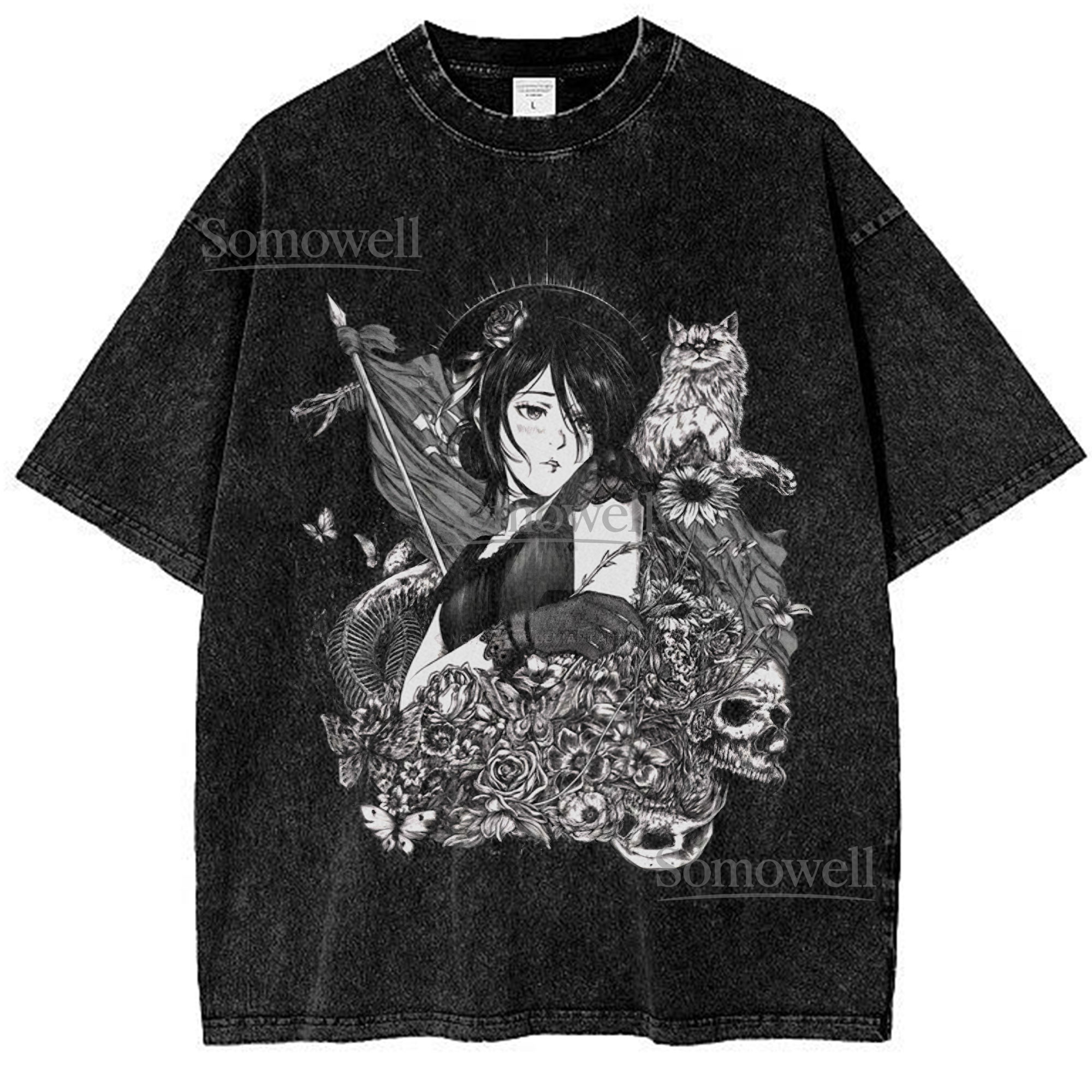 Anime Gothic Woman Cat Skull Flower Graphic ,hoodie sweatshirt t shirt vintage Dark Japanese T Shirt