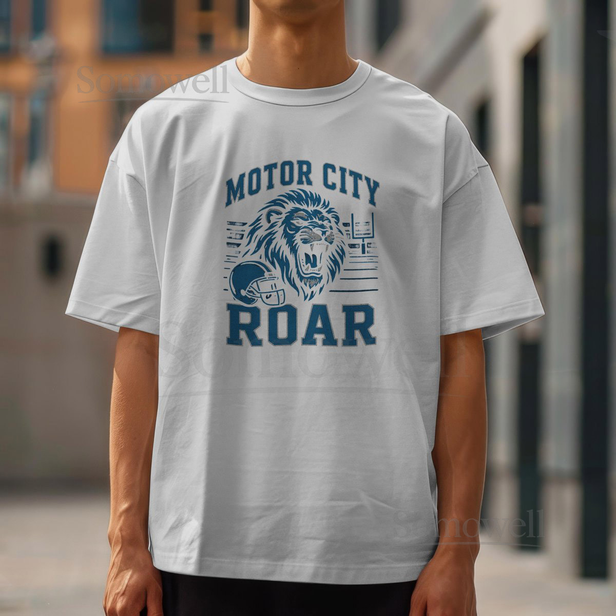 Motor City Roar T-Shirt Detroit Football Fan Tee Blue Lion Graphic Shirt_607