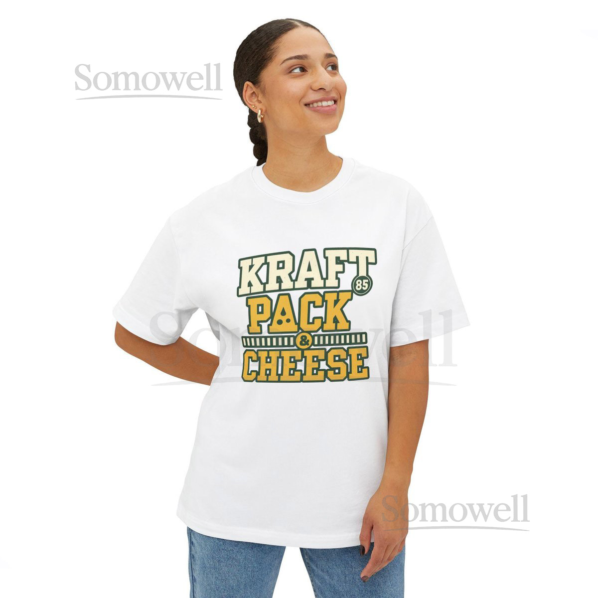 Kraft Pack and Cheese Retro Football T-Shirt Unisex Oversized Boxy Top Green Bay Sports Shirt Packers Fan Gift Distressed Graphic Tee_542