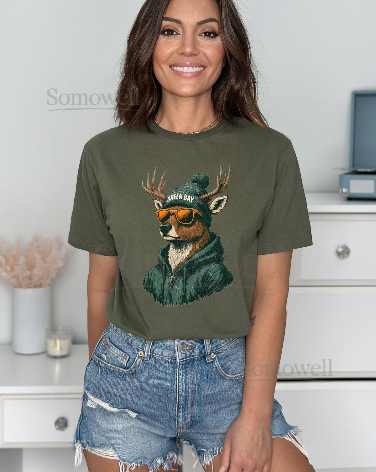 Green Bay Fan Cool Deer Graphic Unisex Softstyle T-Shirt_368