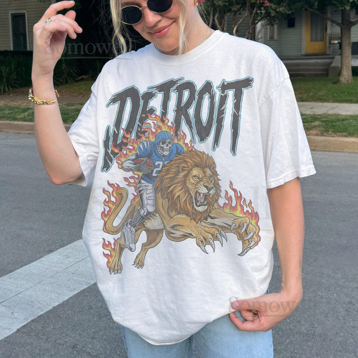 Detroit lions vintage football skeleton graphic tee retro horror style t shirt roaring lions fire design unique halloween sports fan gift_316