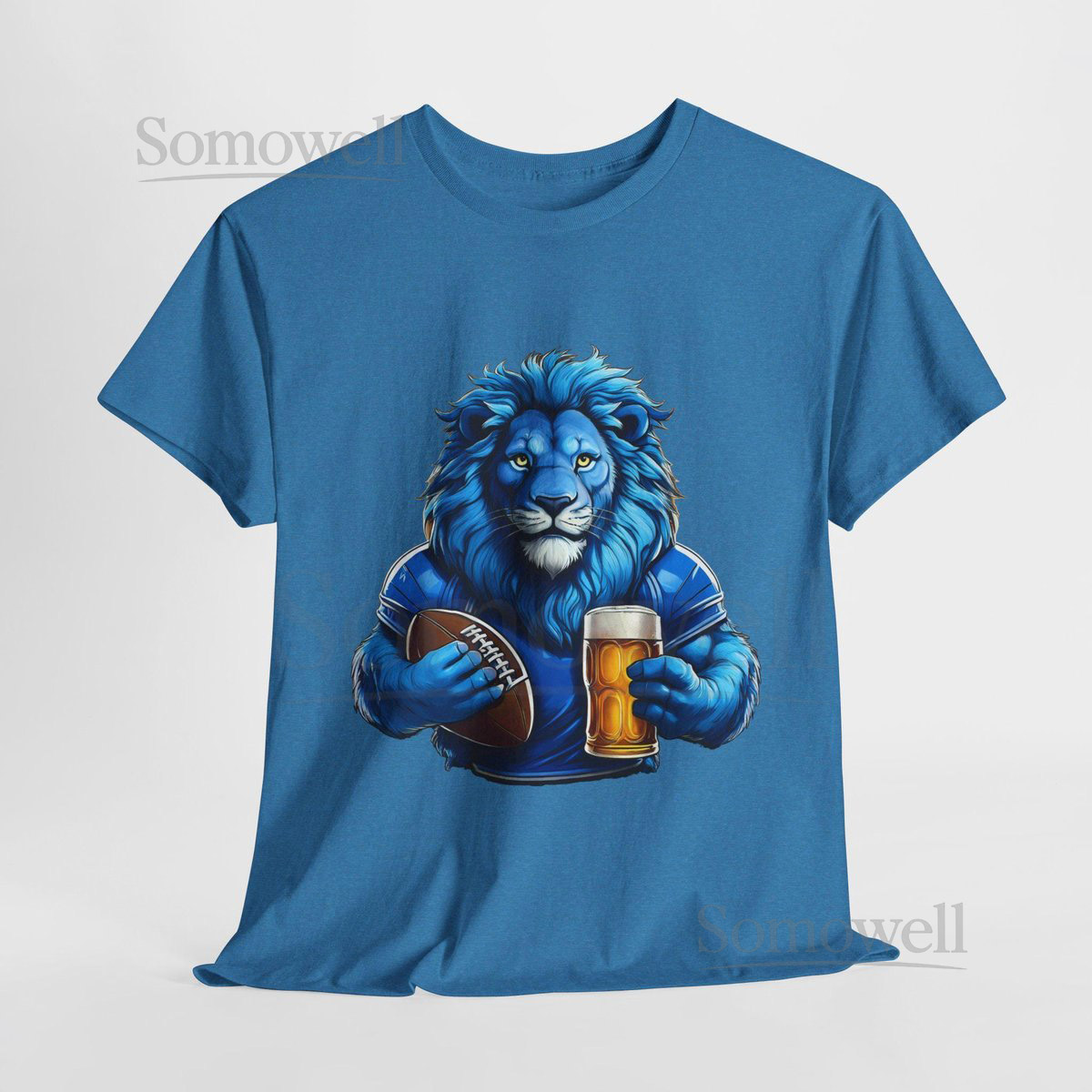 Detroit Lions T-Shirt Lion Holding Beer and Football Game Day Tee_299