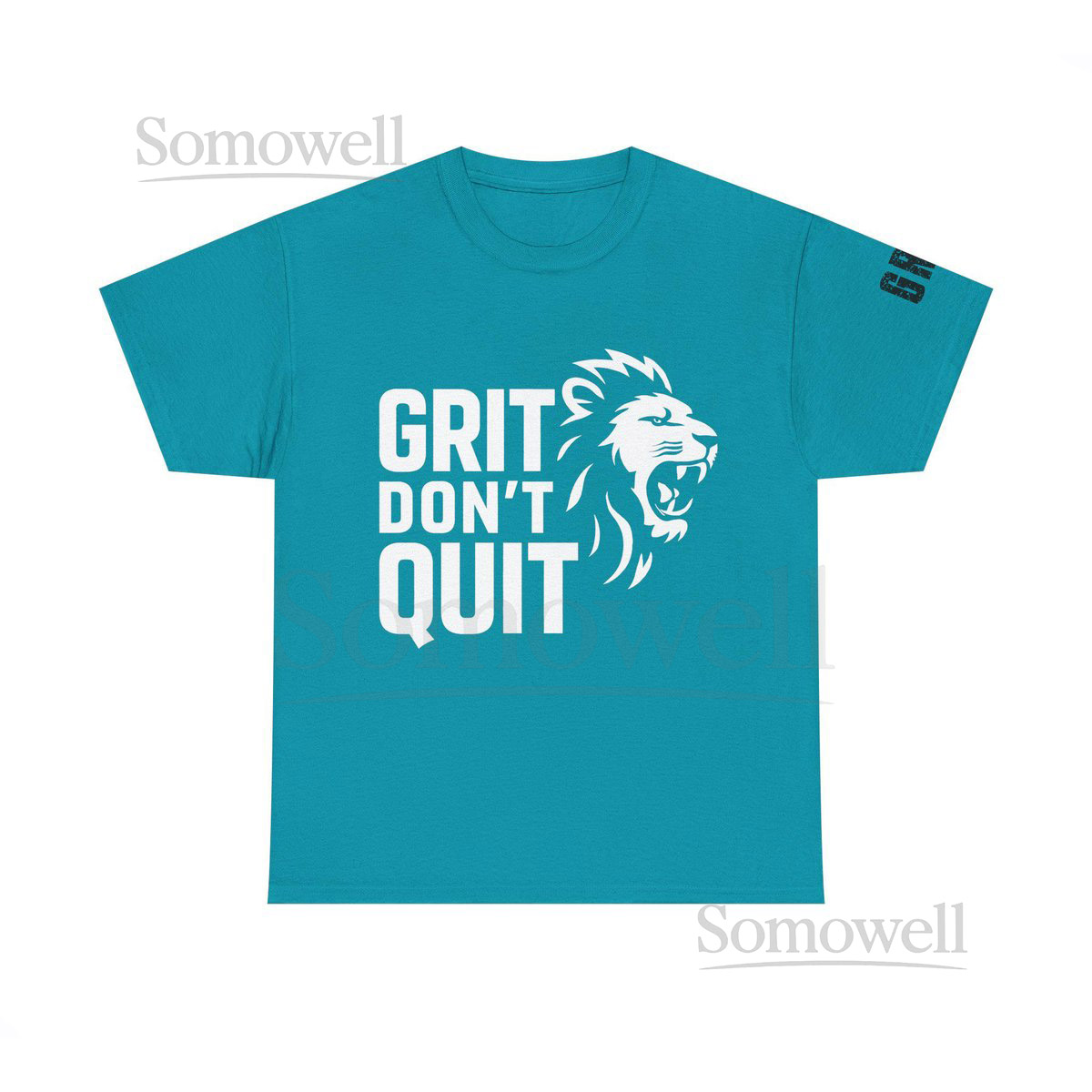 Detroit Lions GRIT DON’T QUIT White Text Cotton Tee Unisex Heavy T-Shirt Detroit Football Fan Gift_250