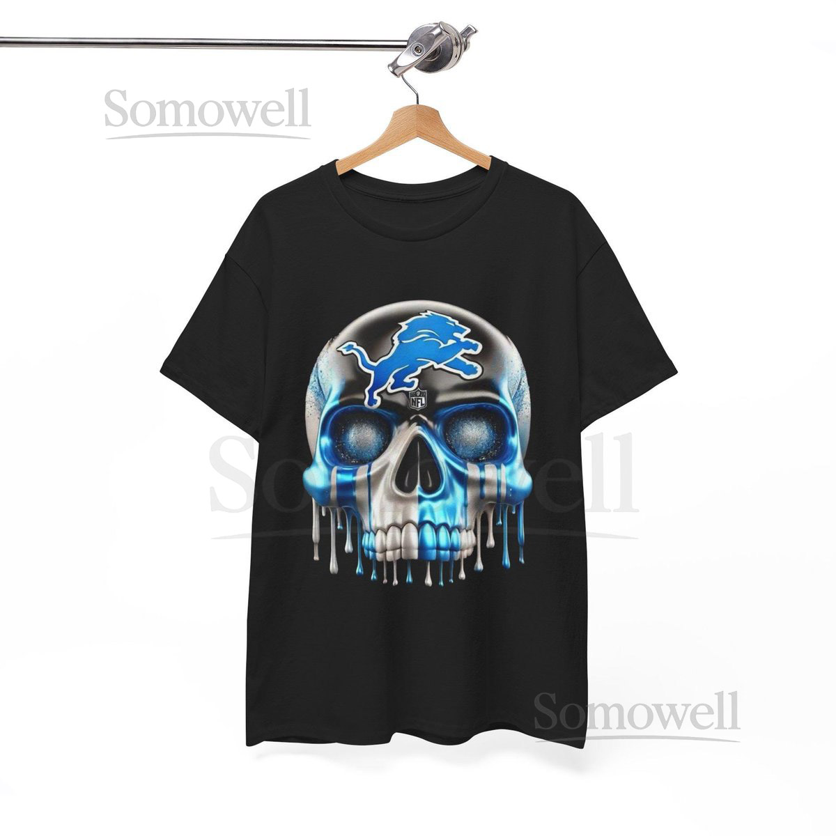 Detroit Lions Dripping Skull Tee Edgy Football Fan Shirt_215