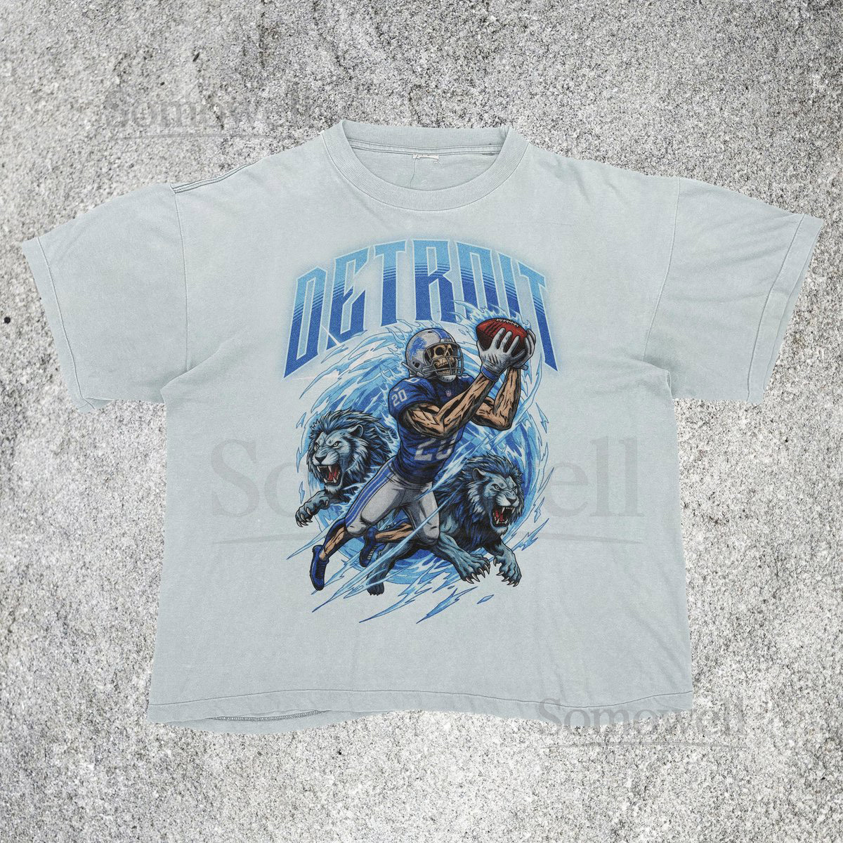 Detroit Lions Football Illustrated Lion Tshirt_226