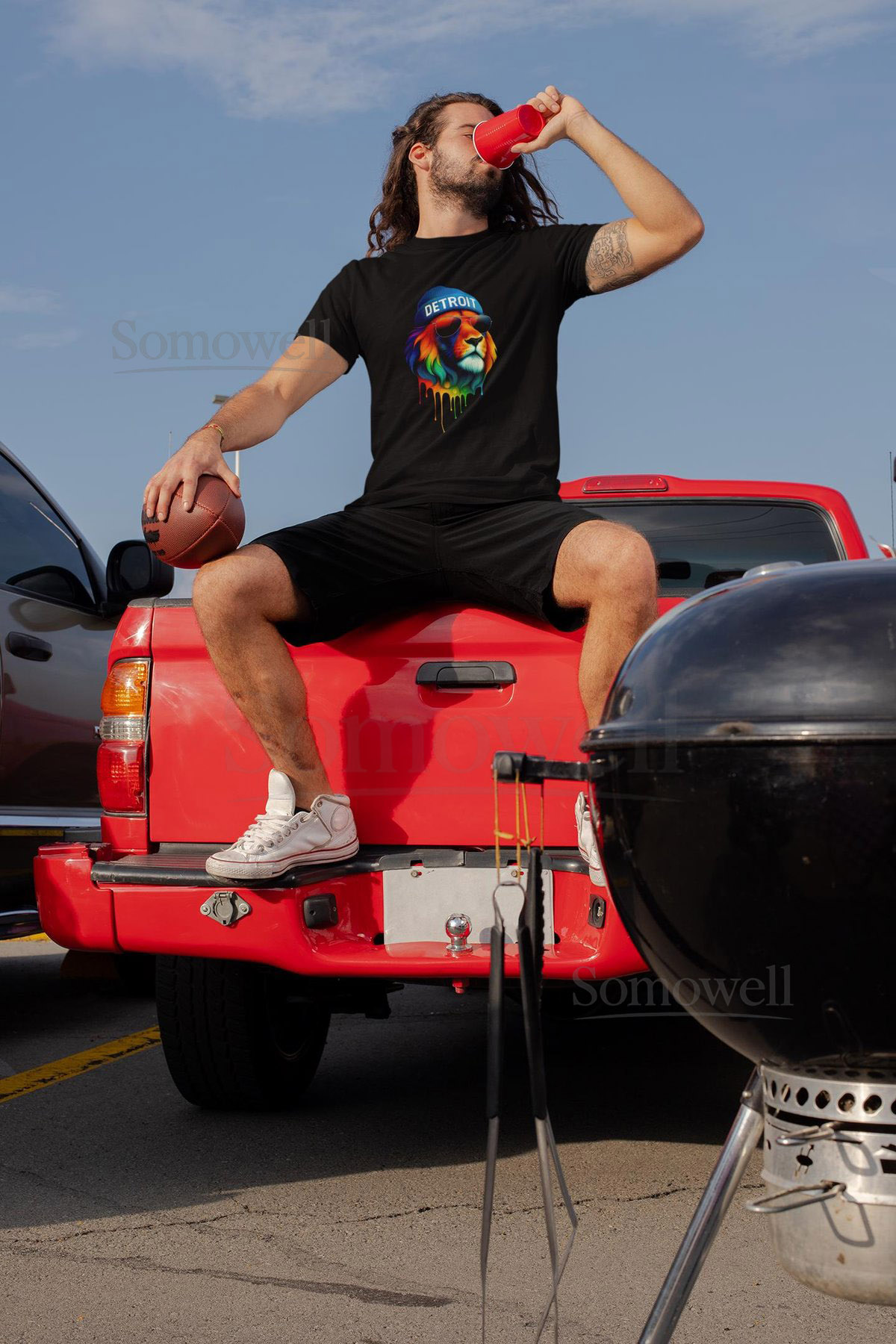 Detroit Fan Shirt Lion Beanie Sunglasses City and Sports Fan Gear Bella Canvas_97