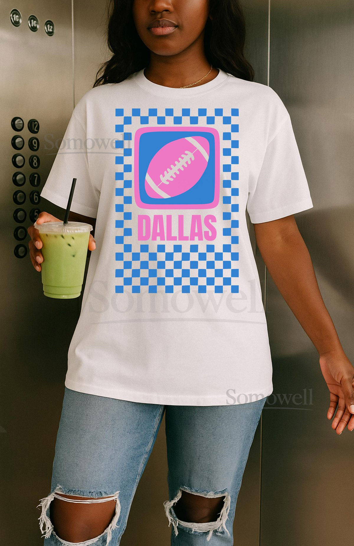 Dallas Football Coquette Shirt Checkered Game Day Tee Cowboy Football T-Shirt Retro Dallas Football Sunday Tailgate Dallas Football Tee_206