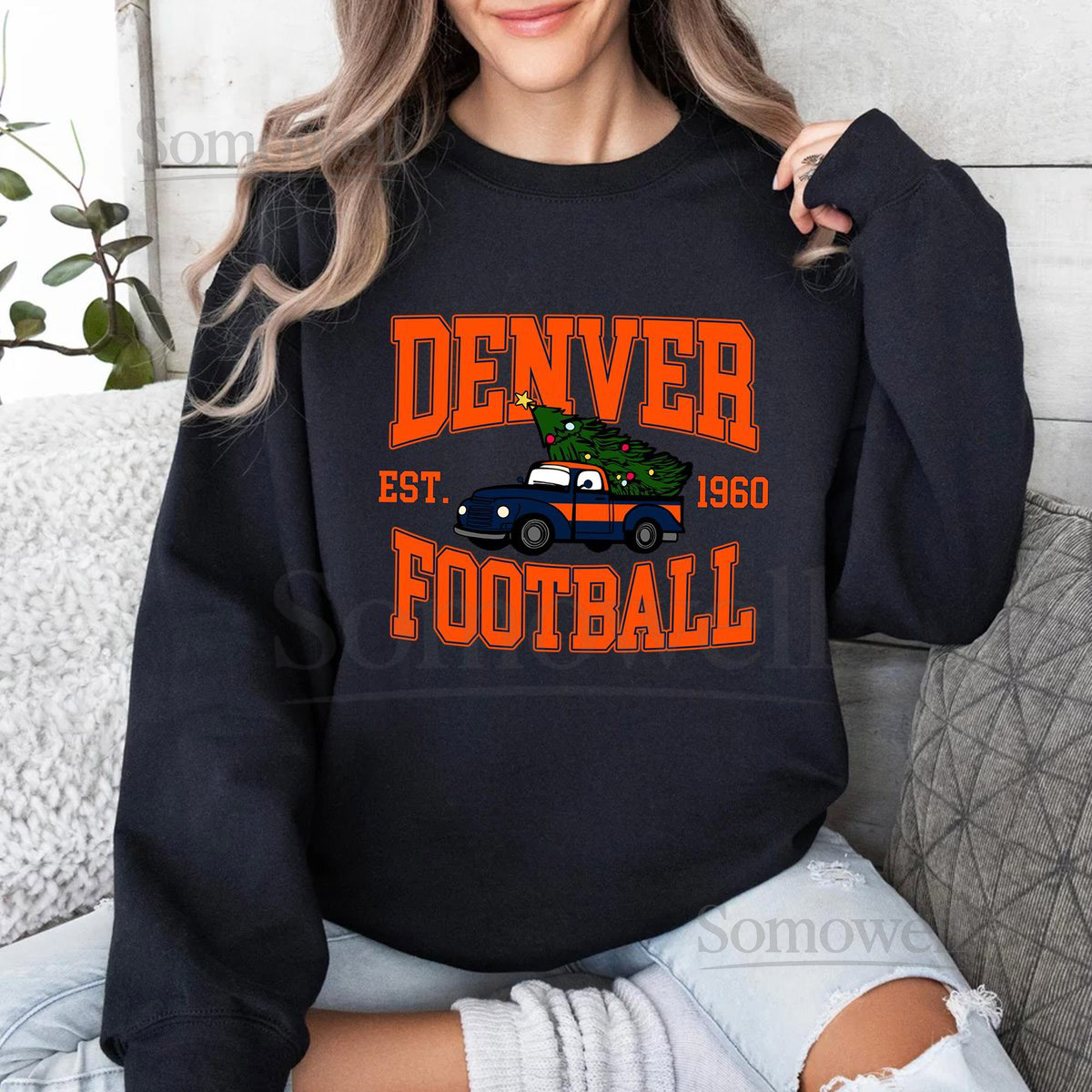 Denver Football Sweatshirt Christmas Tree Truck Game Day Shirt_353