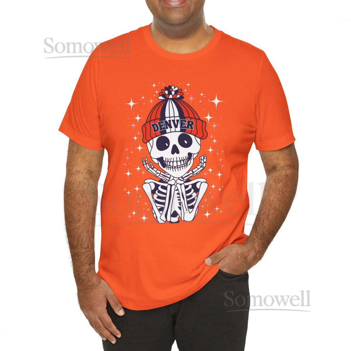 Denver Football Fan T-Shirt Trendy Skeleton Graphic Tee_338