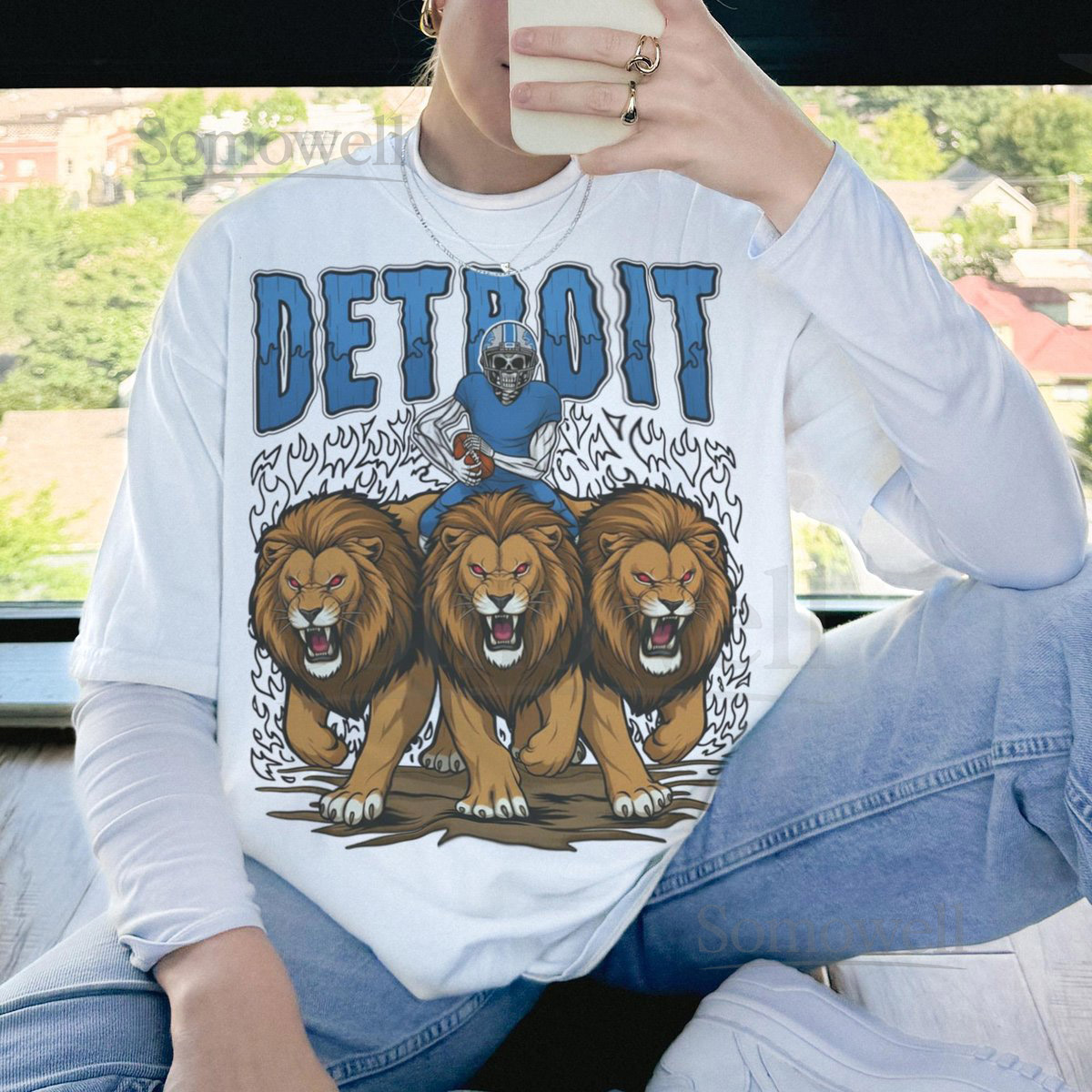 Old School Detroit Football Shirt Comfort Colors Lions Tee Vintage 90s Game Day Football T-Shirt Retro Merch_613