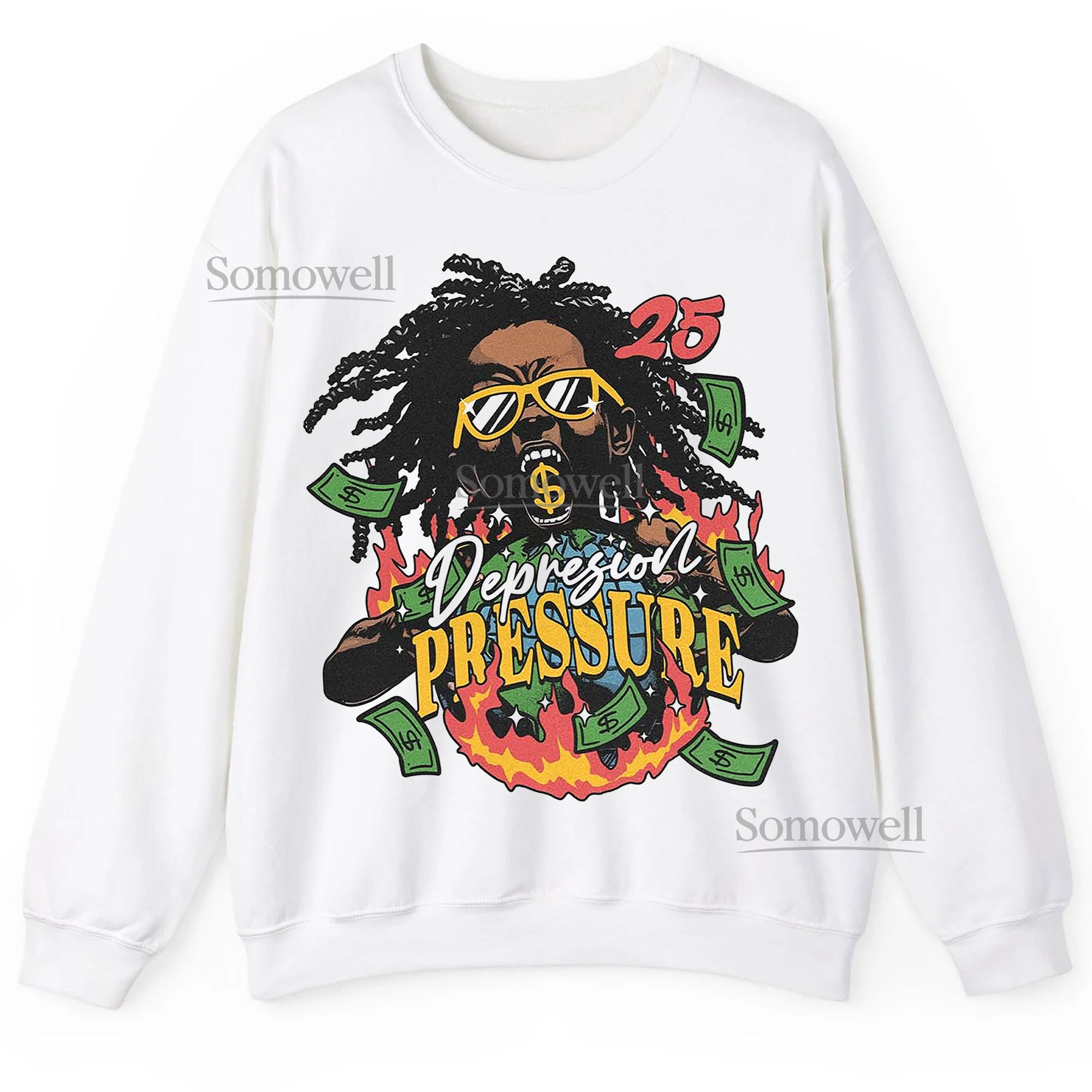 Depression Pressure Fire Flames Money Graphic ,hoodie sweatshirt t shirt vintage Urban Streetwear T Shirt