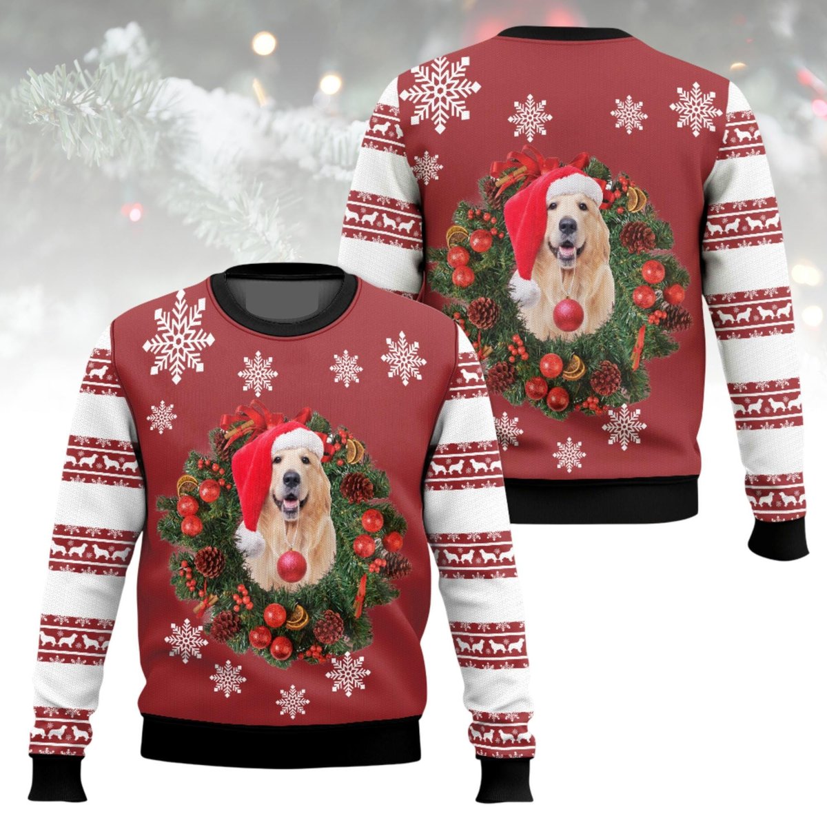 Golden Retriever Dog Wreath Red Ugly Christmas Sweater Cute Holiday Jumper