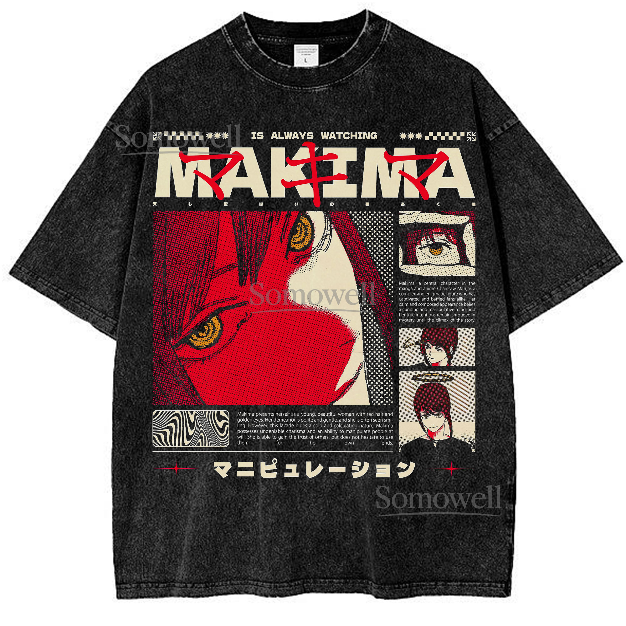 Makima Chainsaw Man Manga Panel Red Black Graphic ,hoodie sweatshirt t shirt vintage Anime T Shirt