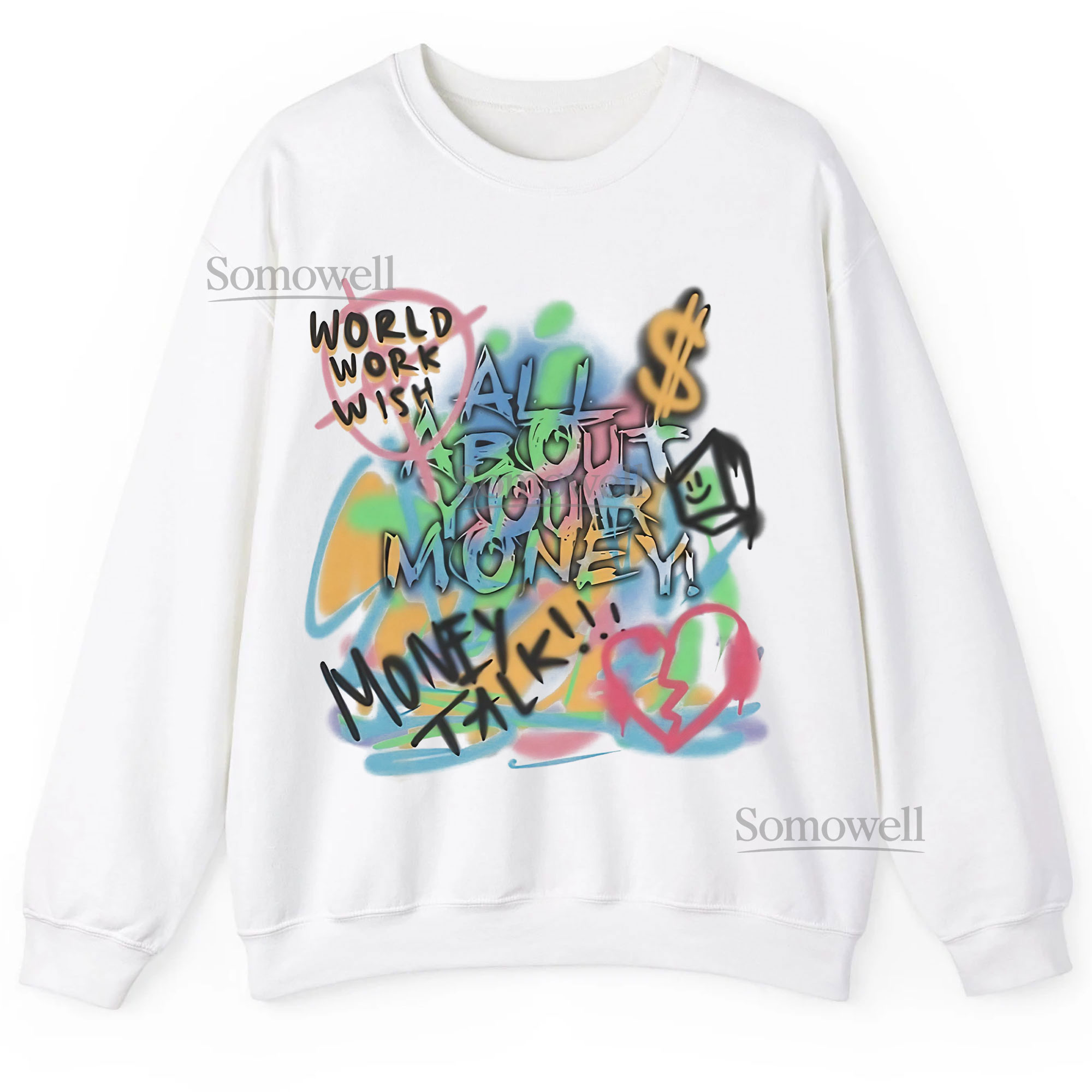 Money Talk Colorful Graffiti Style Urban Streetwear Graphic ,hoodie sweatshirt t shirt vintage Casual T Shirt