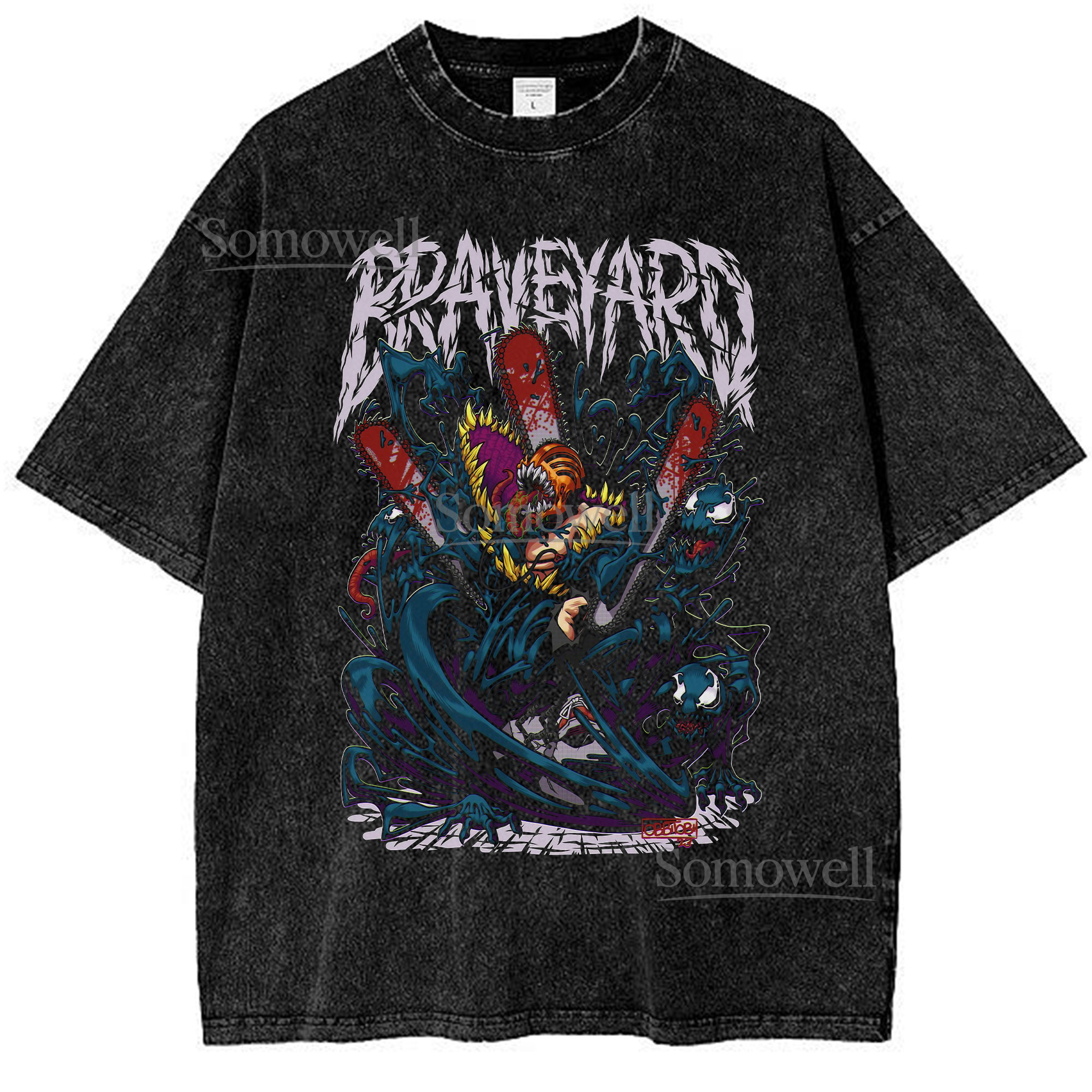 Graveyard Chainsaw Man Manga Style Anime Horror Graphic ,hoodie sweatshirt t shirt vintage Streetwear T Shirt