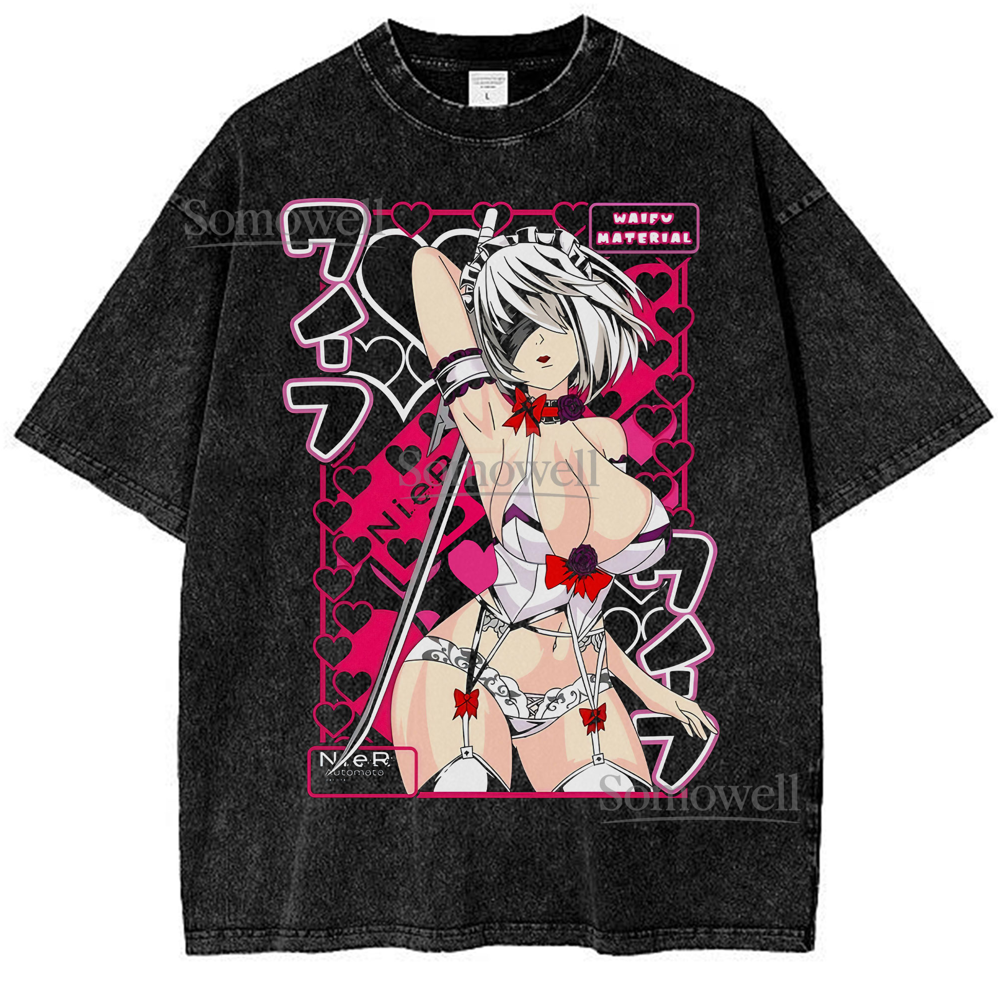Nier Automata 2B Waifu Material Anime Girl Graphic ,hoodie sweatshirt t shirt vintage Japanese Game T Shirt