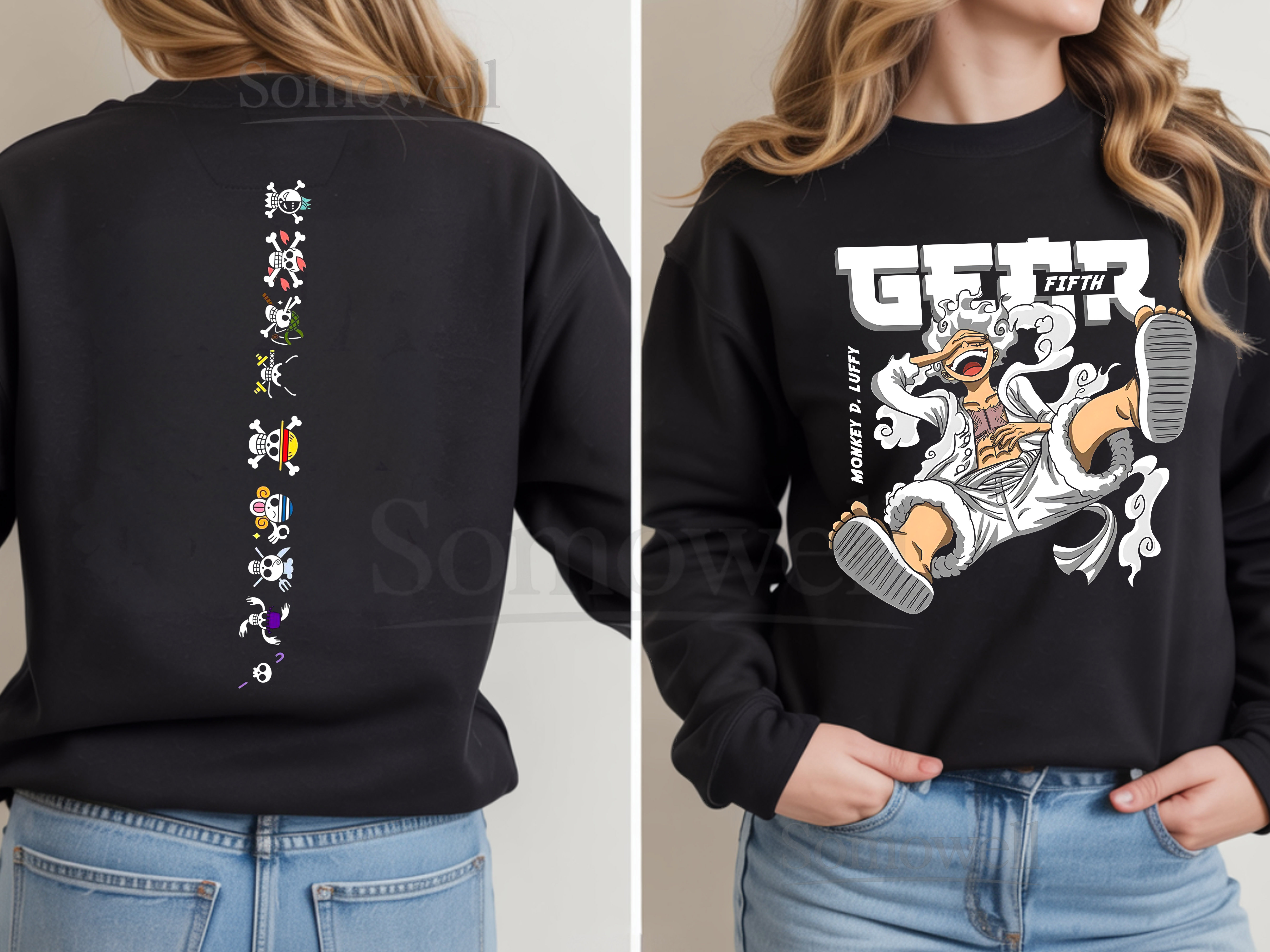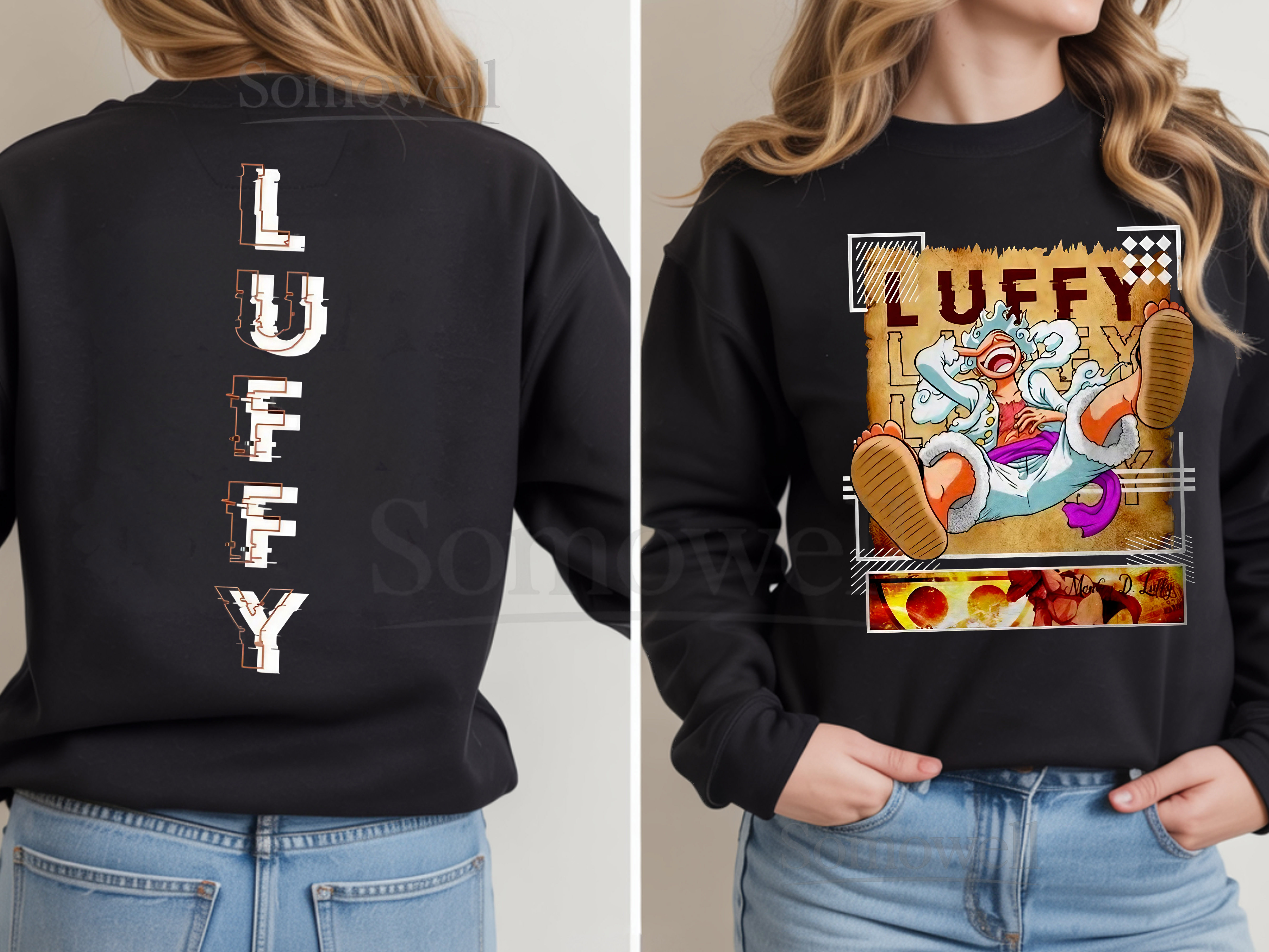 Luffy Gear 5 Nika One Piece Anime Graphic Black Crewneck Sweatshirt