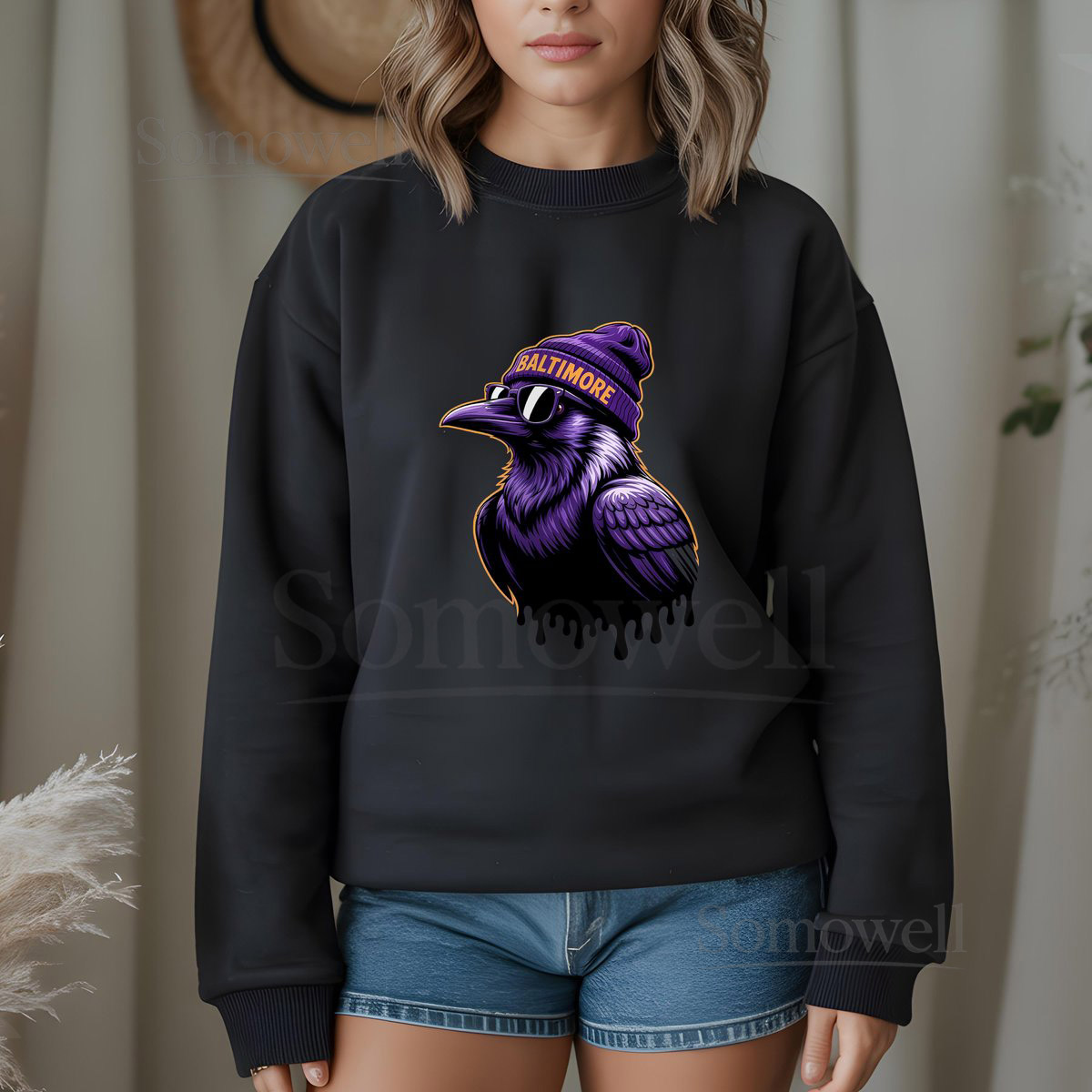 Baltimore Football Retro Crewneck Sweatshirt Raven Retro Stripe Sleeve Sweatshirt Baltimore Unisex Shirt Game Day Shirt Raven Fan Gift_112