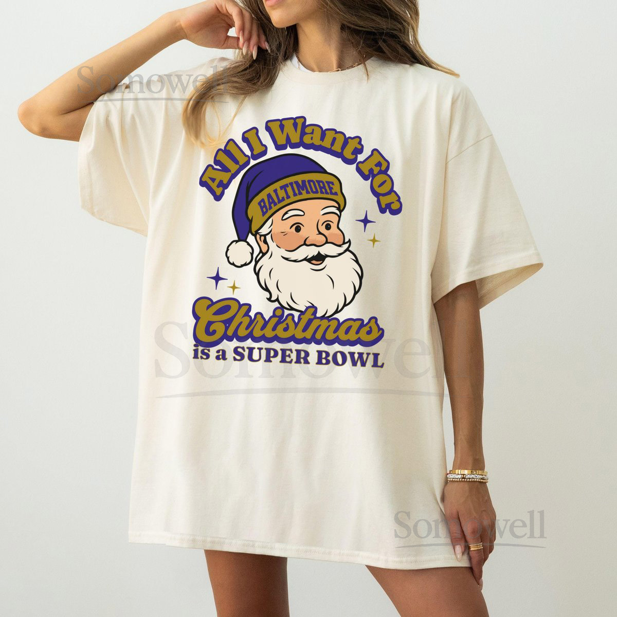 Baltimore Football Christmas Super Bowl T-Shirt Retro Raven Football Tee Holiday Football Fan Shirt Festive Sports Apparel Santa Shirt_103