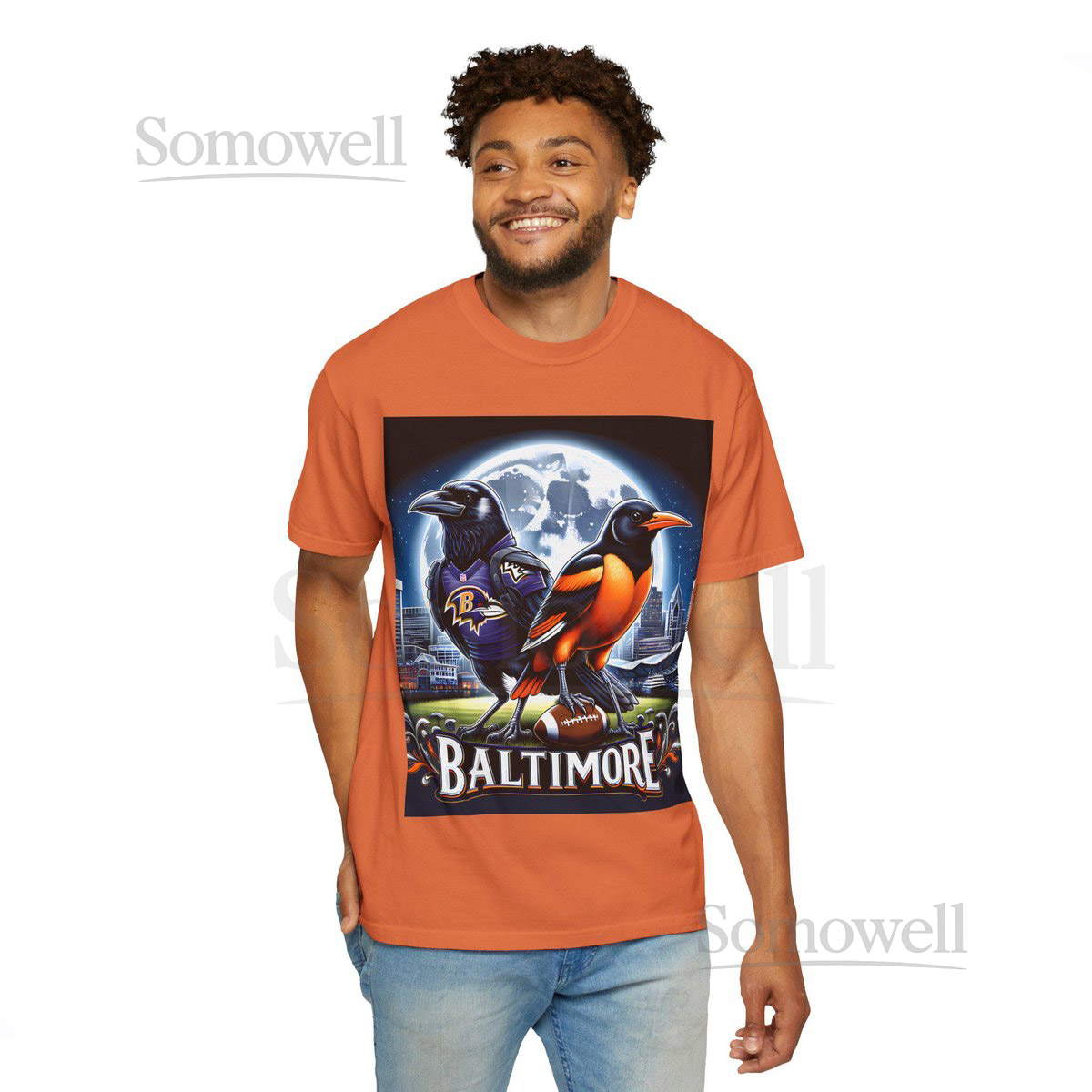 Baltimore Ravens Orioles T-shirt Baseball Football Fan Gift Baltimore Birds Tee Unisex Garment-Dyed Shirt Sports Apparel Team Spirit_111