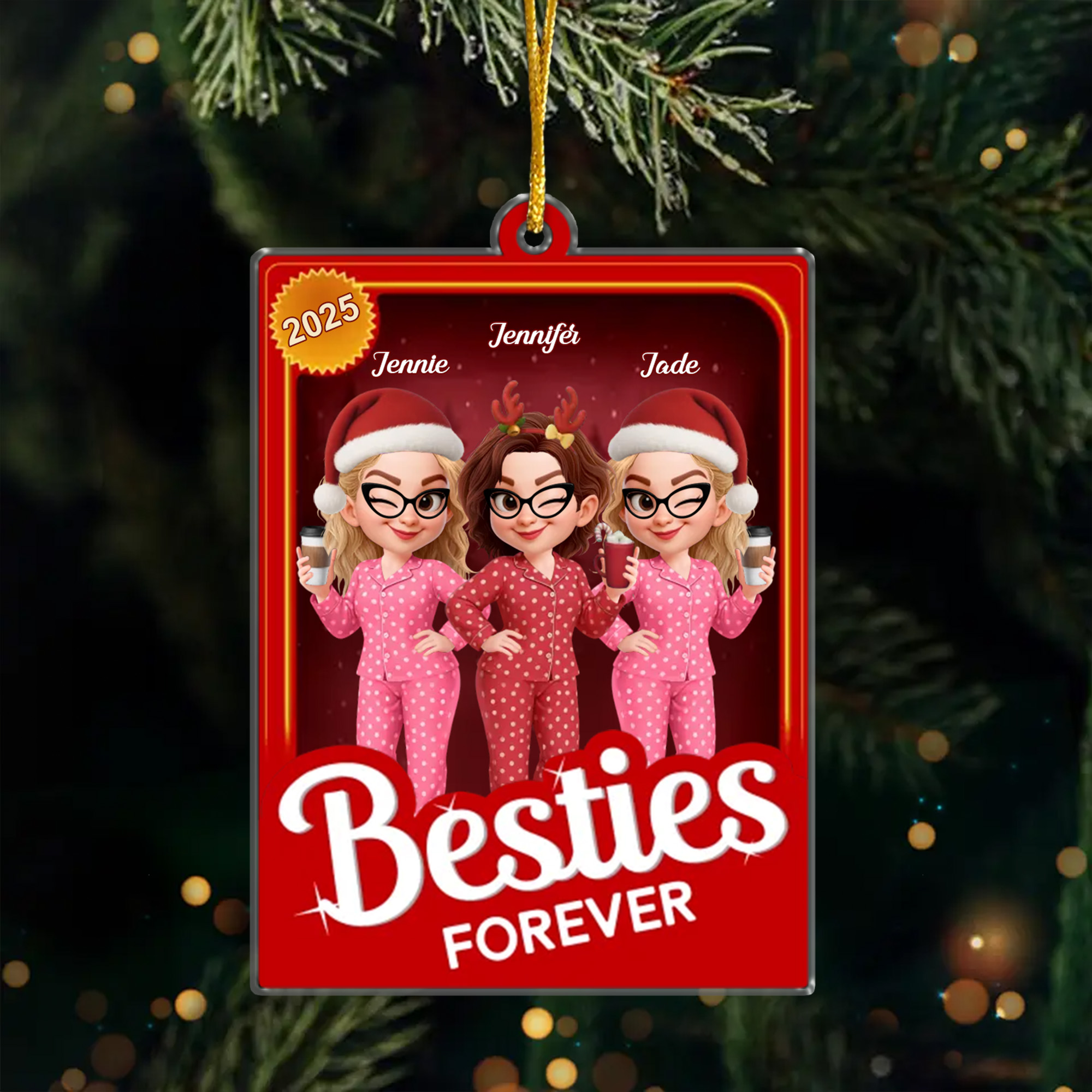 Personalized Besties Ornament with Names Besties Forever Acrylic Keepsake Christmas Gift for Friend Group-ASO-28Q63