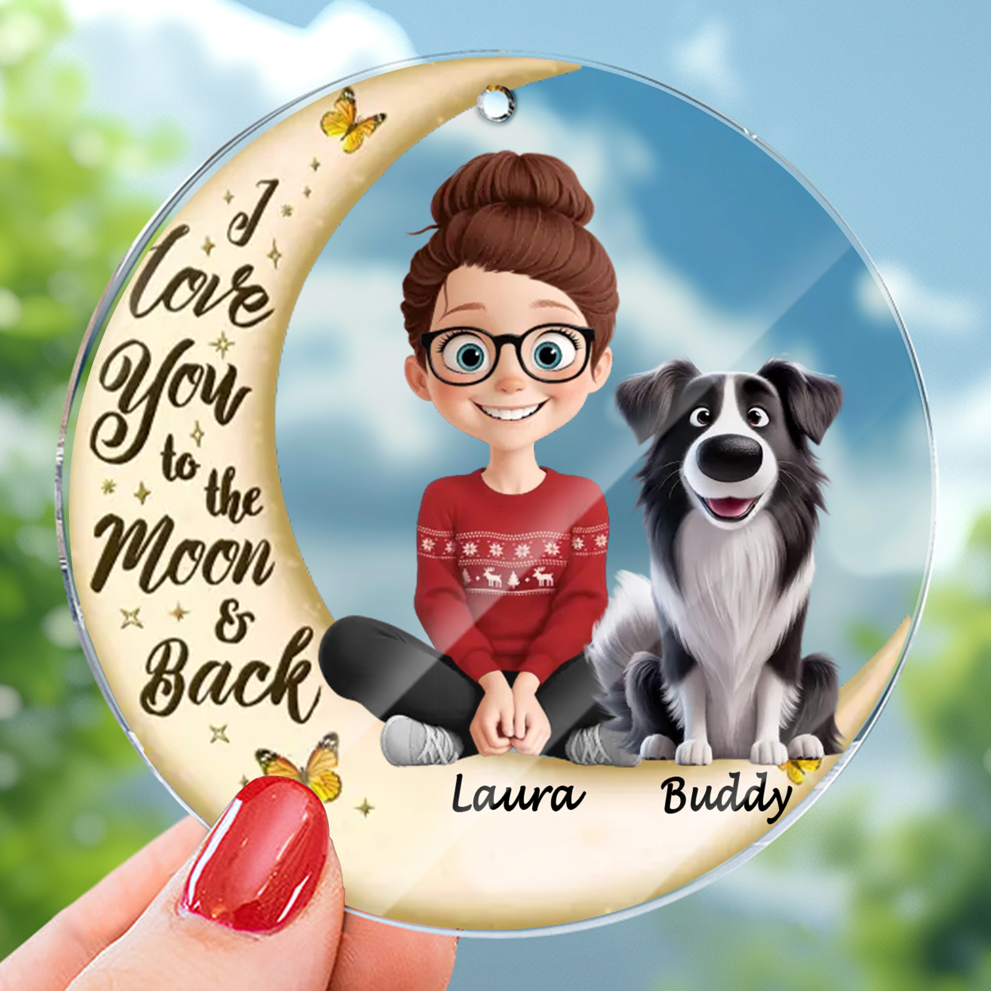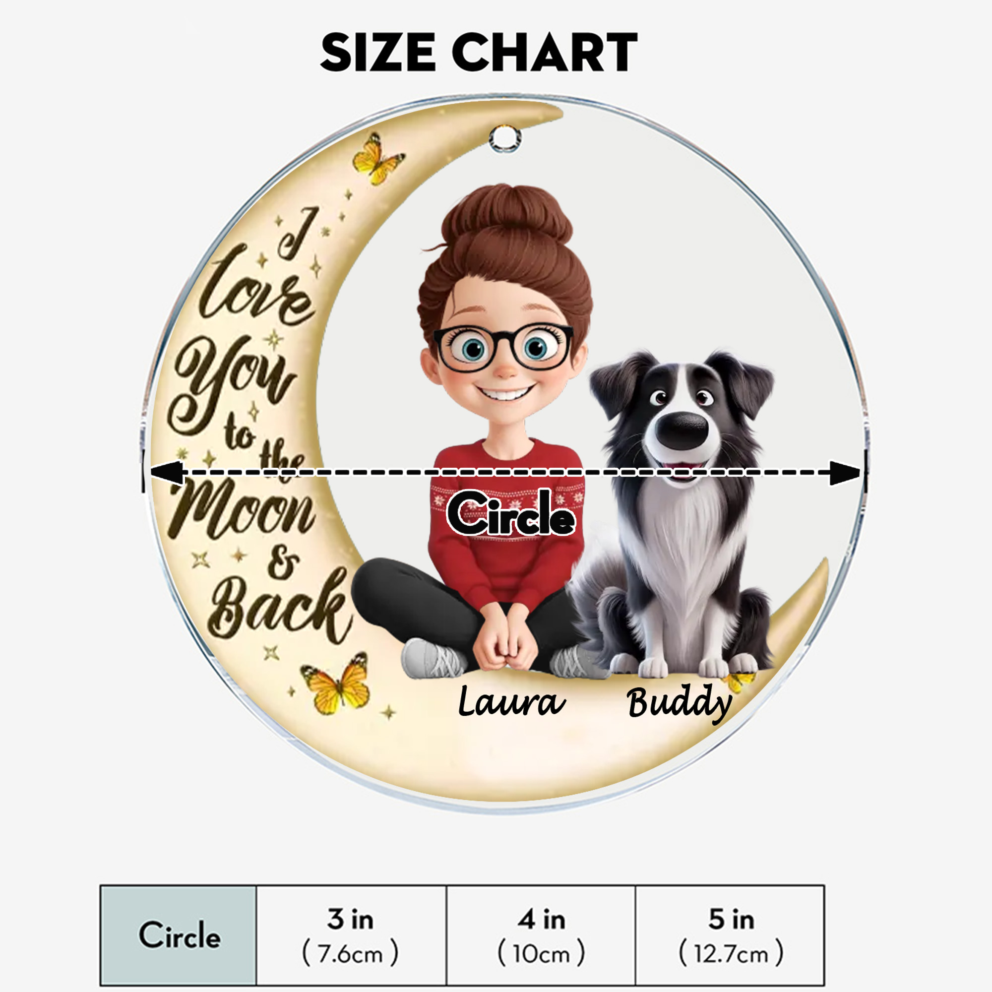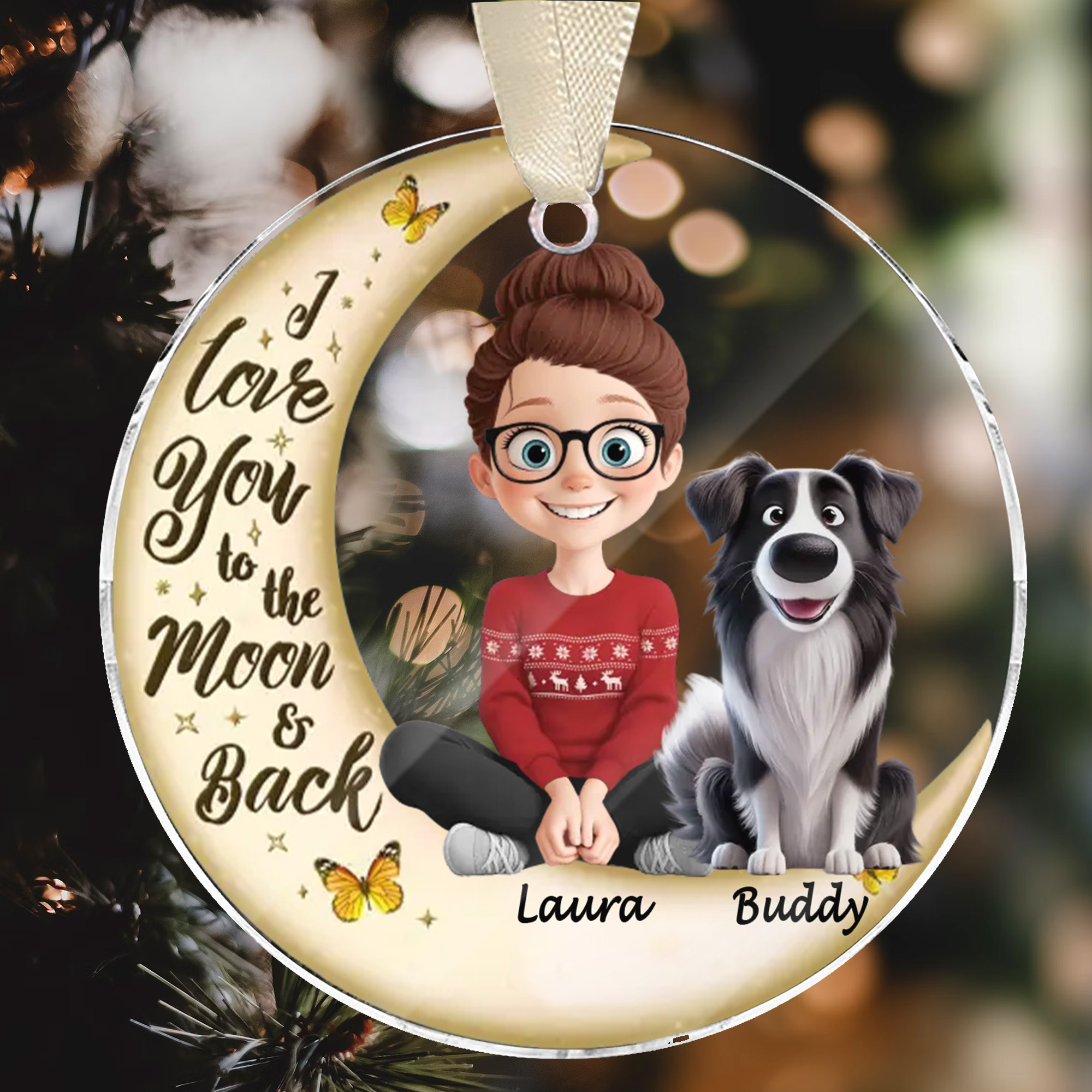 Personalized Moon Back Woman Dog Ornament Custom Names Acrylic Keepsake Christmas Gift for Dog Mom-ARO-JQHL6