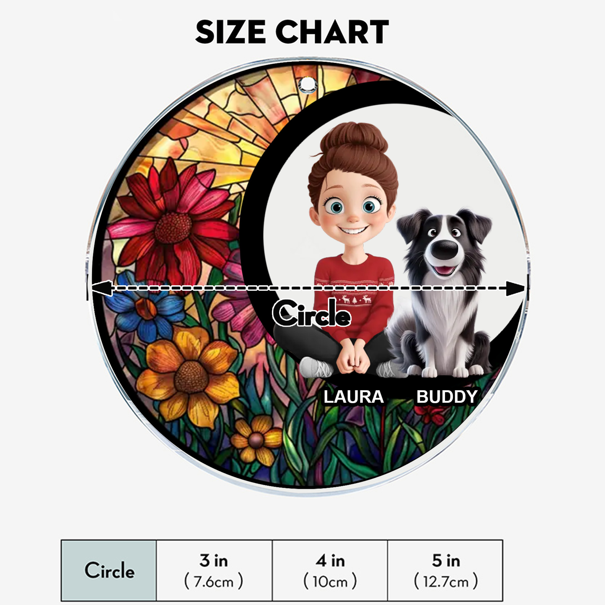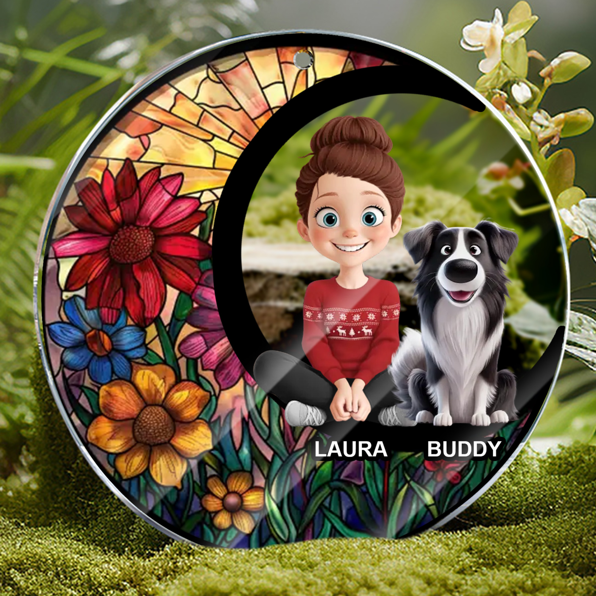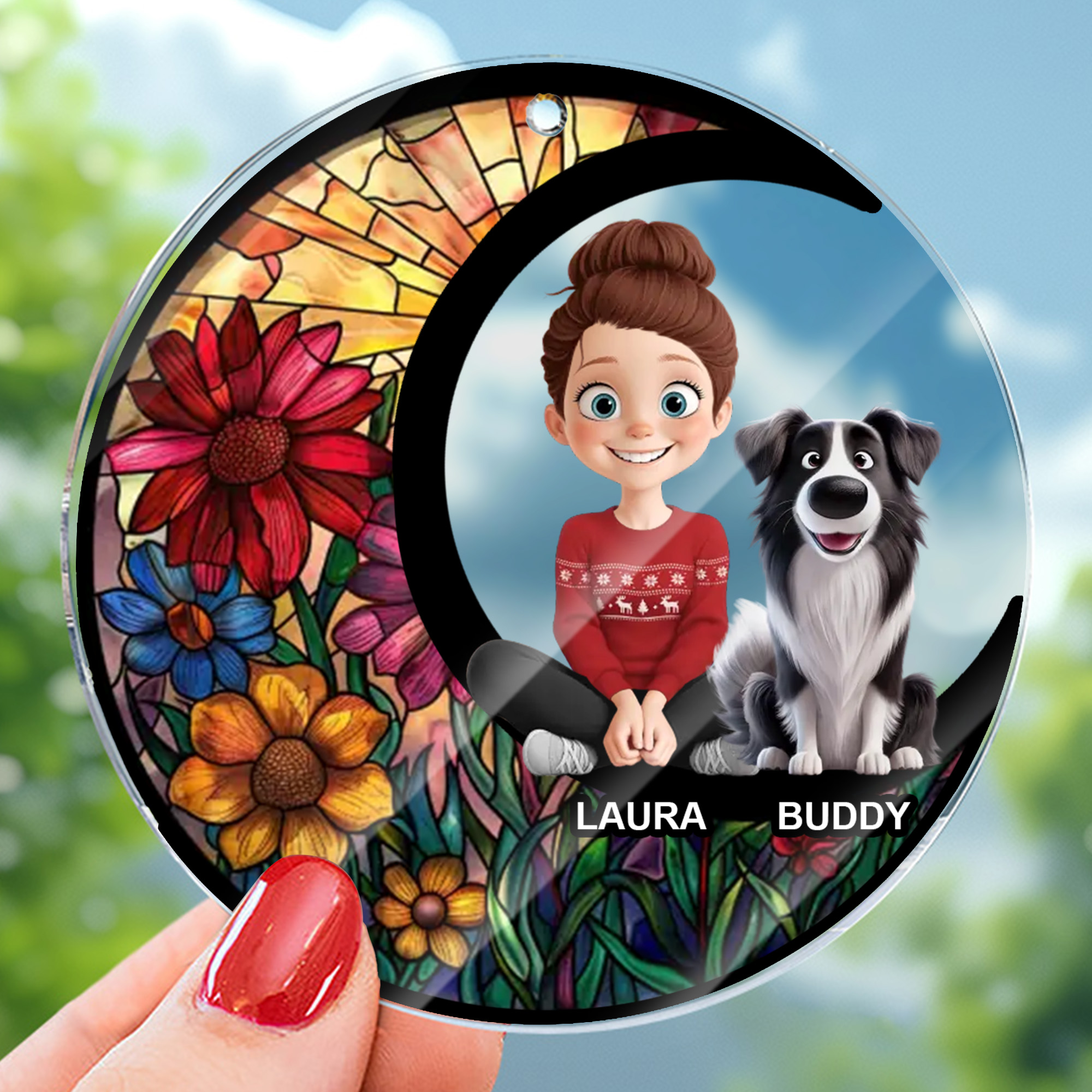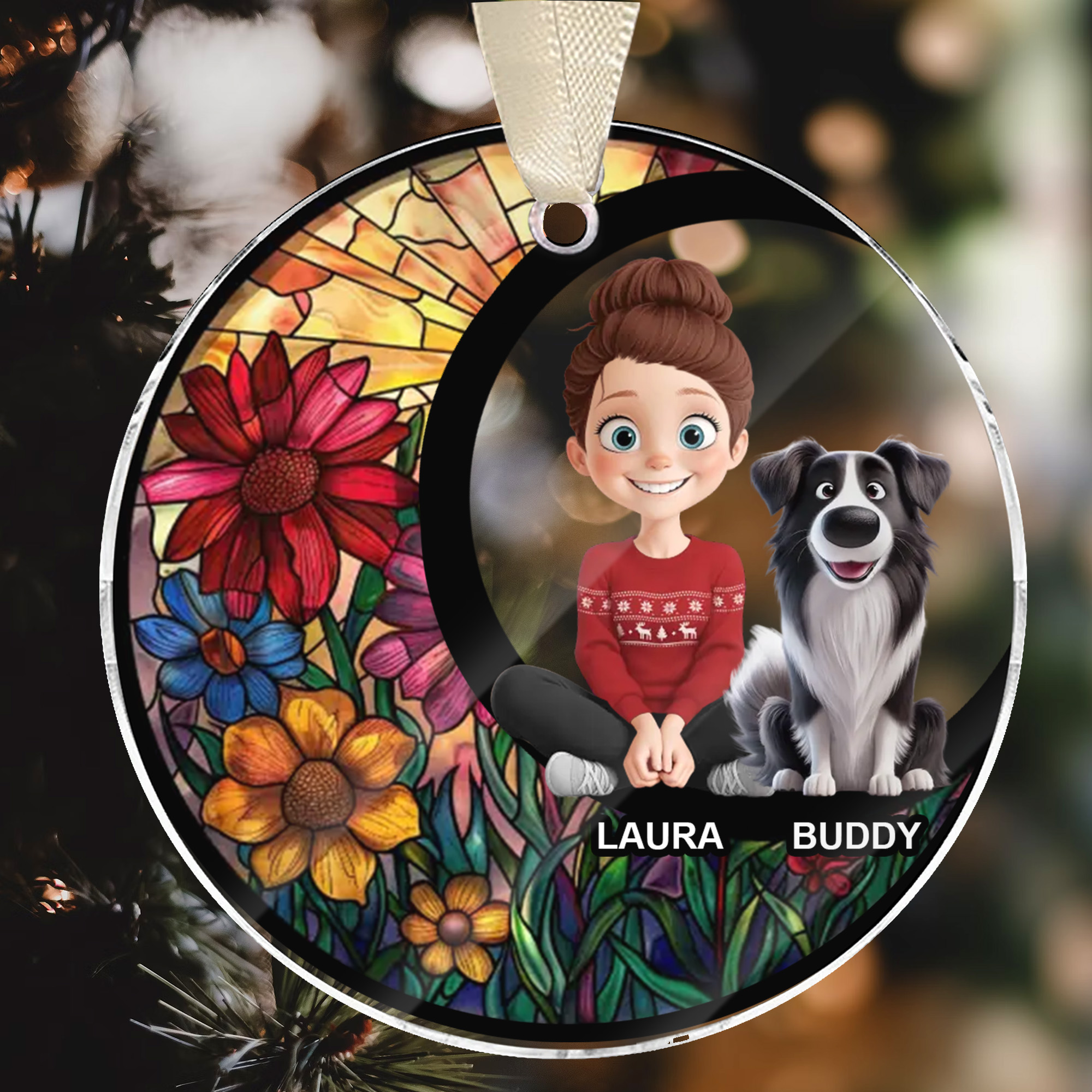 Personalized Woman and Dog Ornament with Names Moon Stained Glass Acrylic Keepsake Christmas Gift for Pet Lovers-ARO-8J5AQ