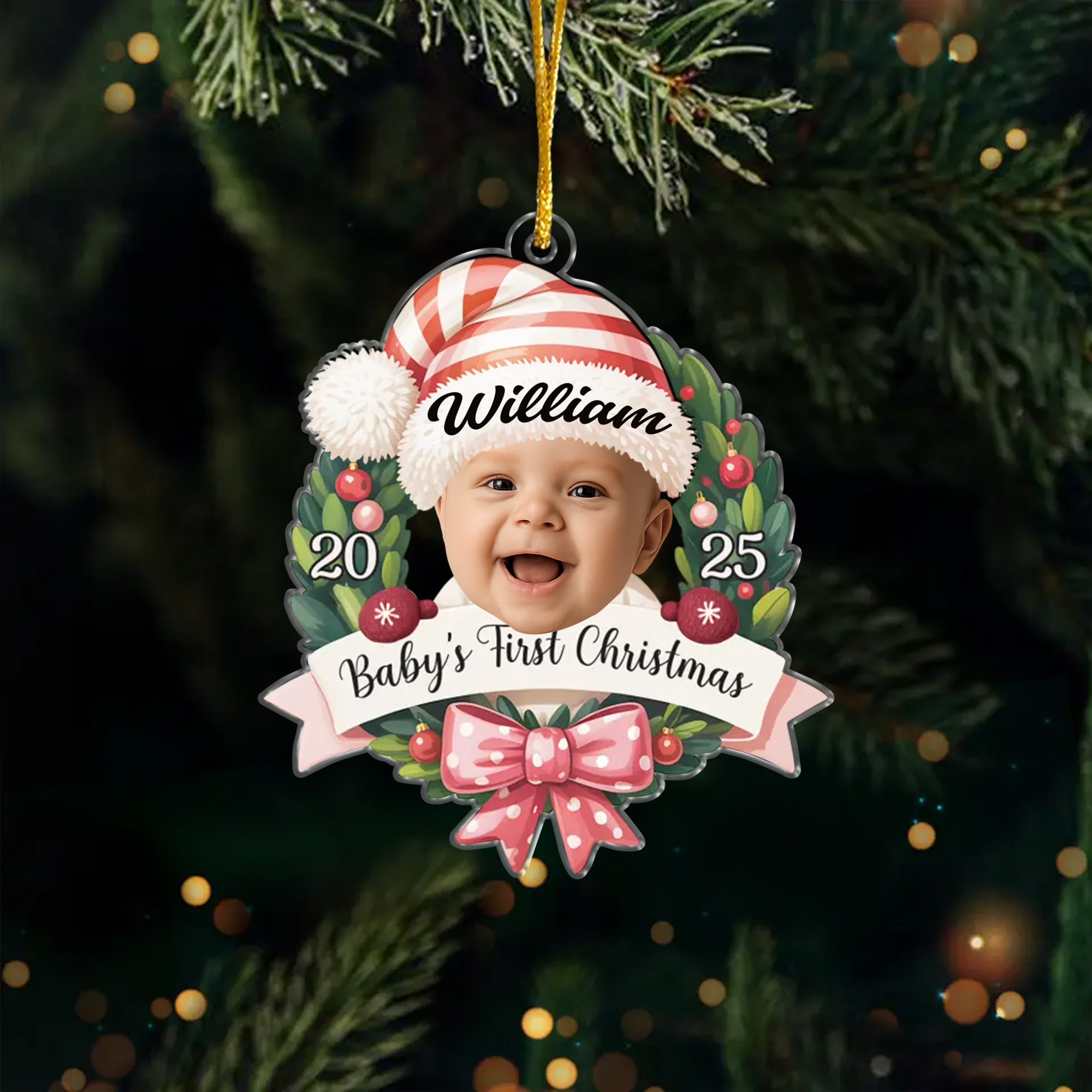 Personalized Babys First Christmas Photo Ornament Acrylic Wreath Holiday Gift for New Parents 2025-ASO-JHBP1
