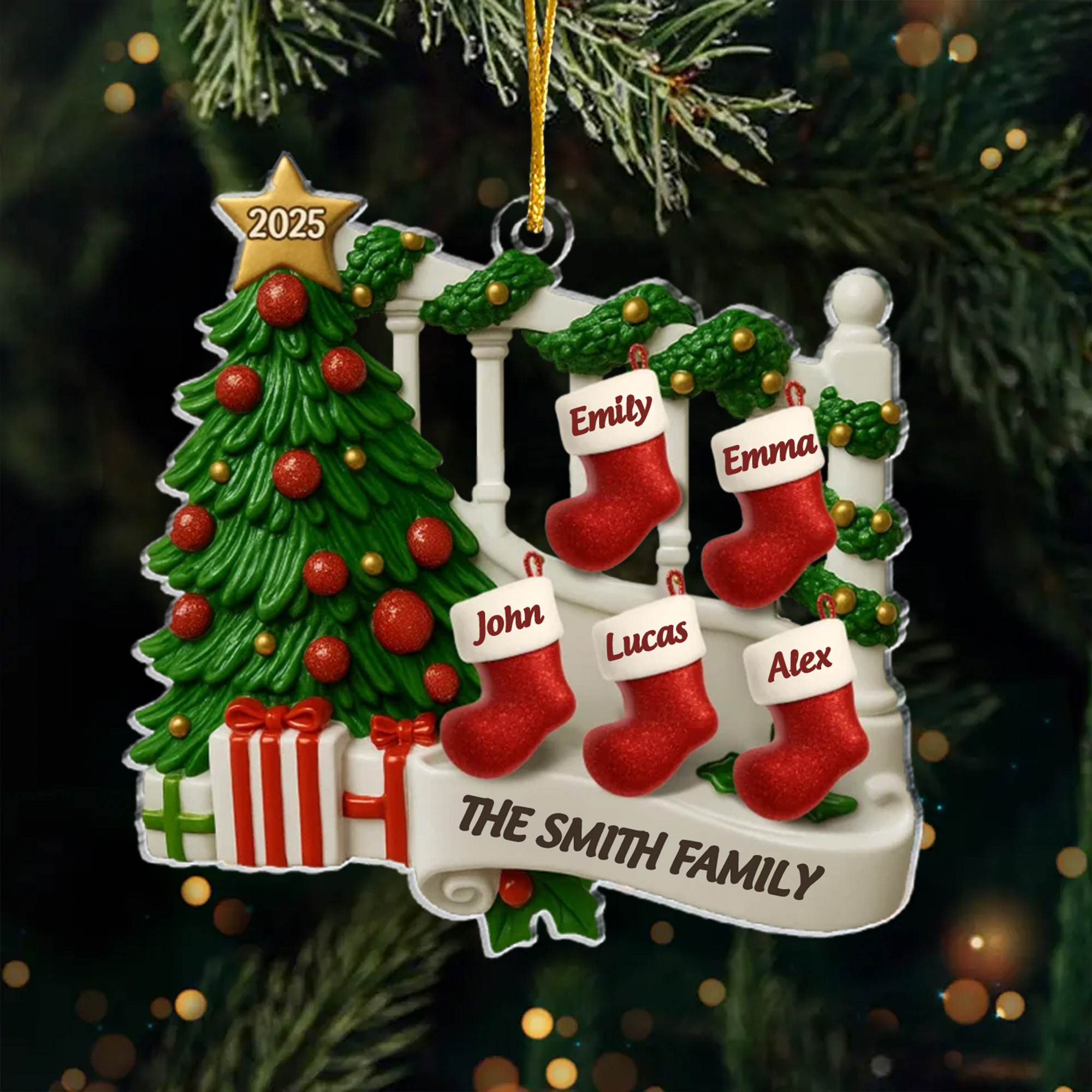 Personalized Family Stocking Christmas Ornament Acrylic Custom Name Holiday Decor for Families 2025-ASO-4VLSZ