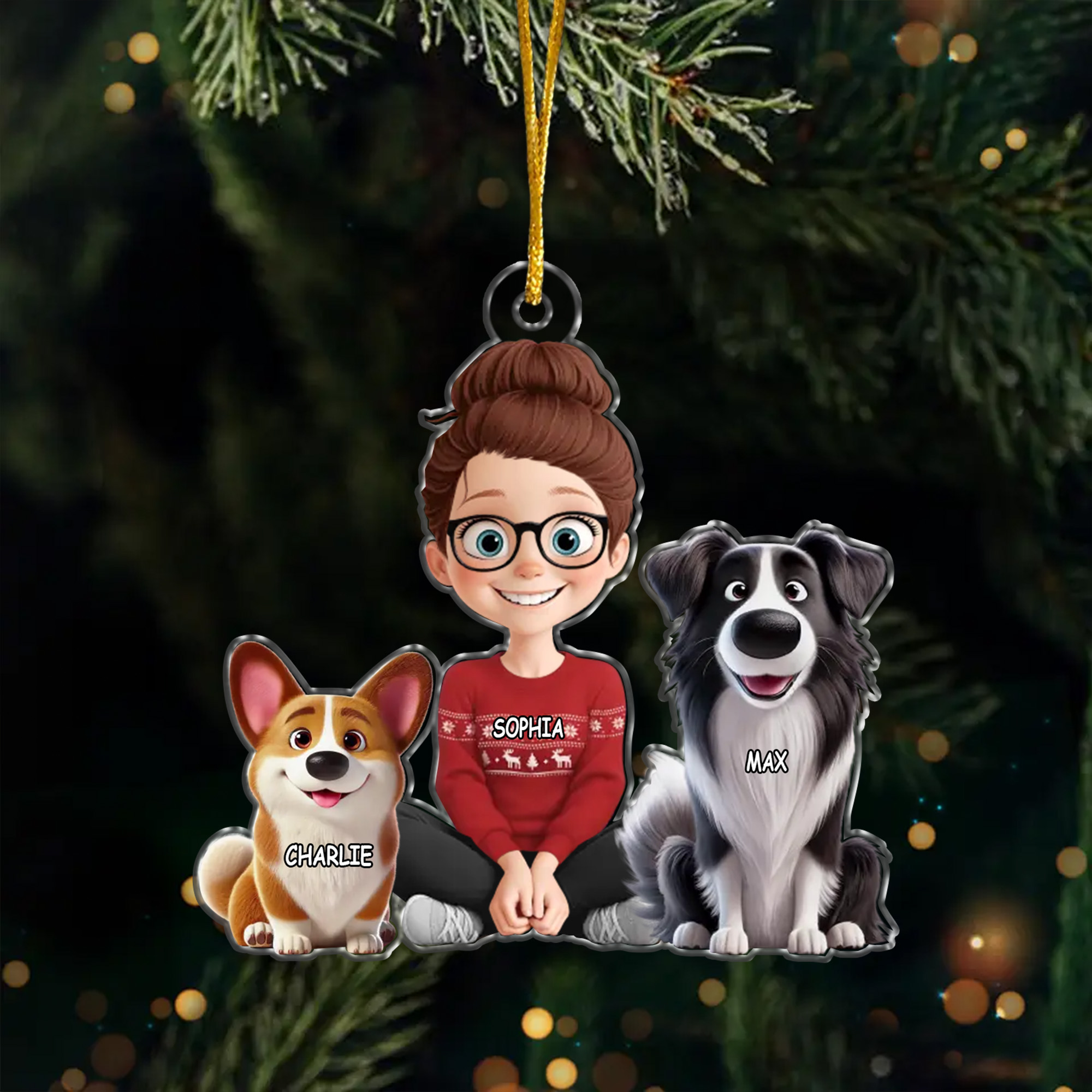 Personalized Woman with Two Dogs Ornament Acrylic Christmas Gift for Dog Lovers Pet Owners 2025-ASO-HSCZV