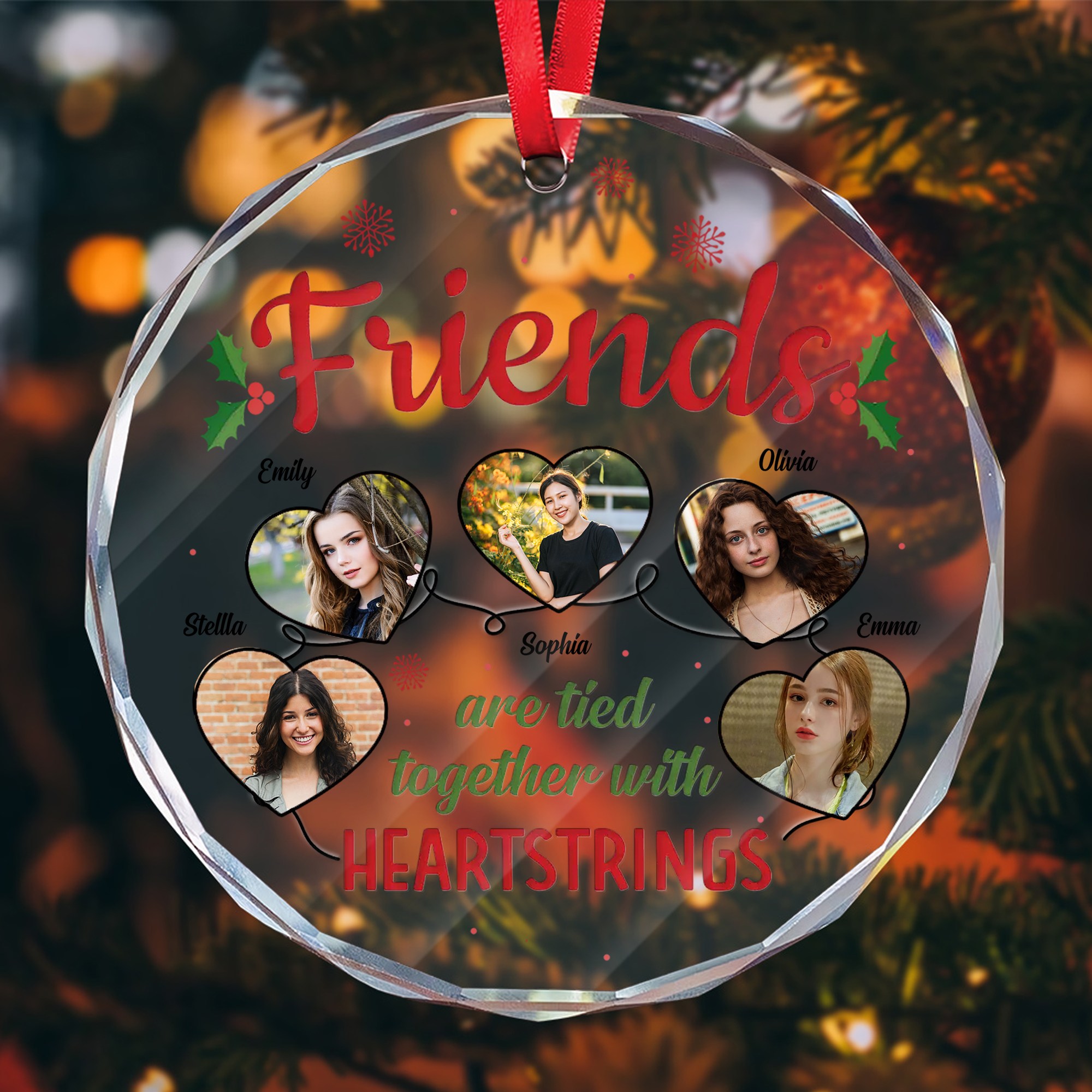 Personalized Best Friend Photo Ornament Custom Glass Heartstrings Keepsake Gift for Friends Christmas-GLO-YGQKI