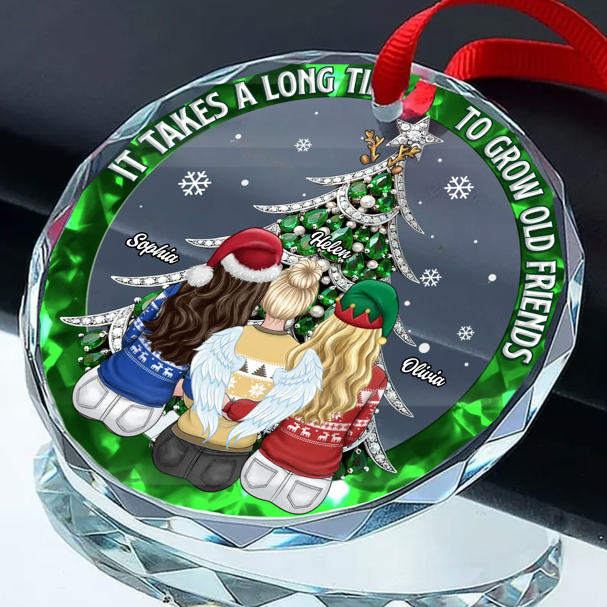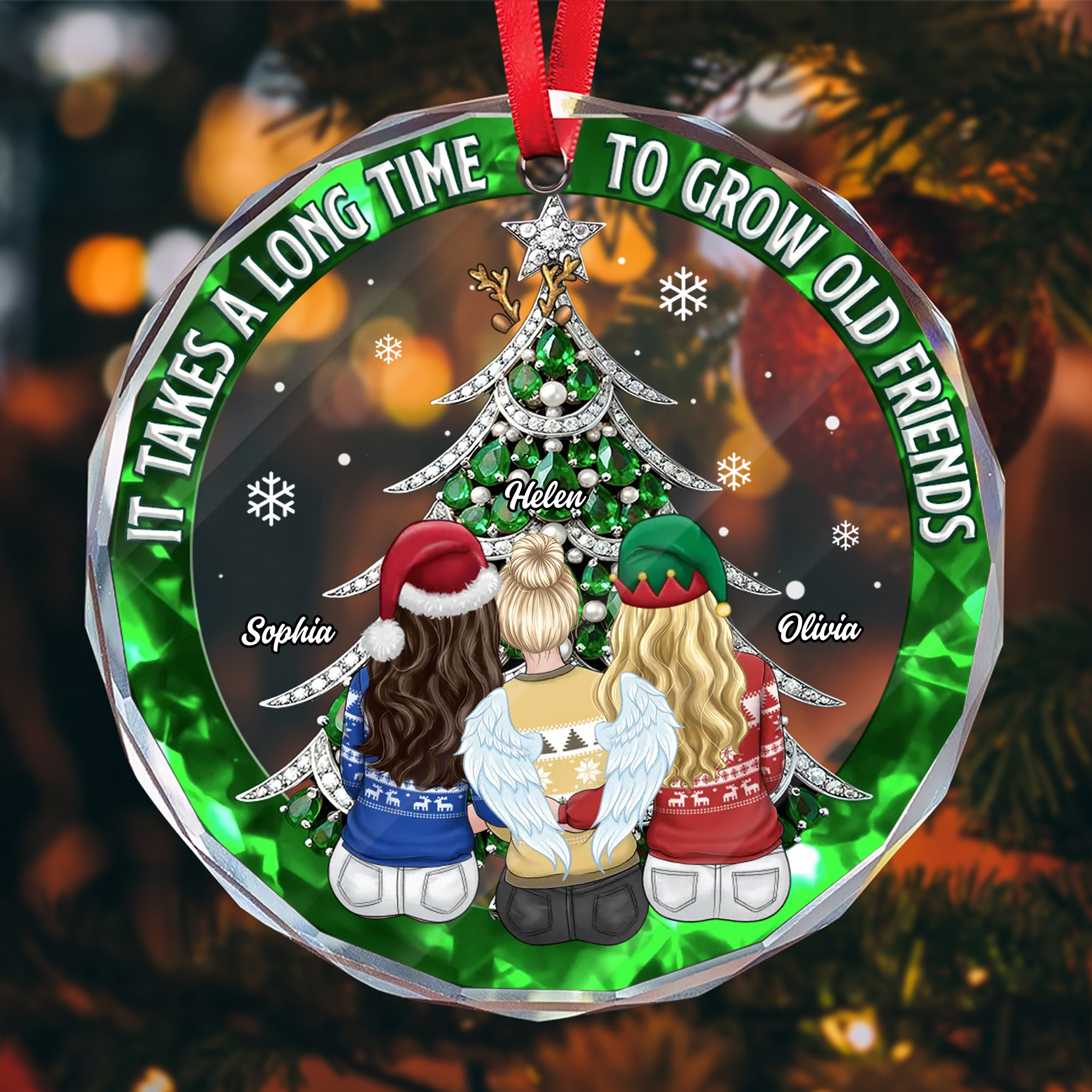 Personalized Best Friends Christmas Glass Ornament Custom Old Friends Keepsake for Besties-GLO-IXCVA