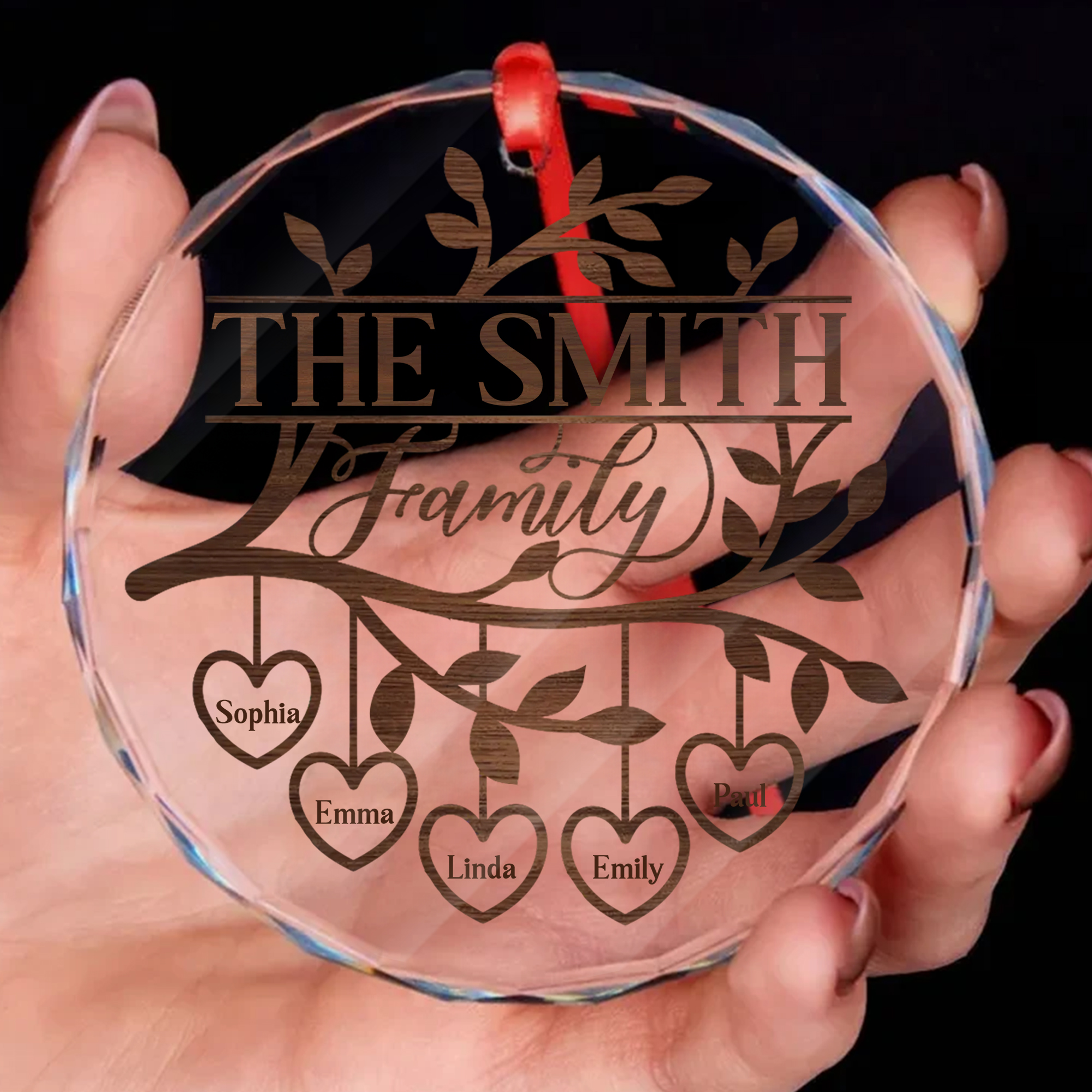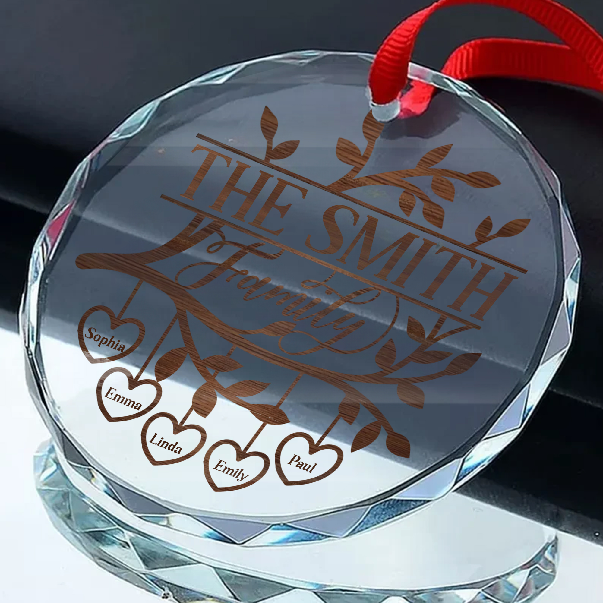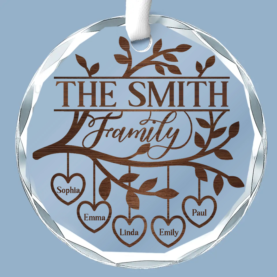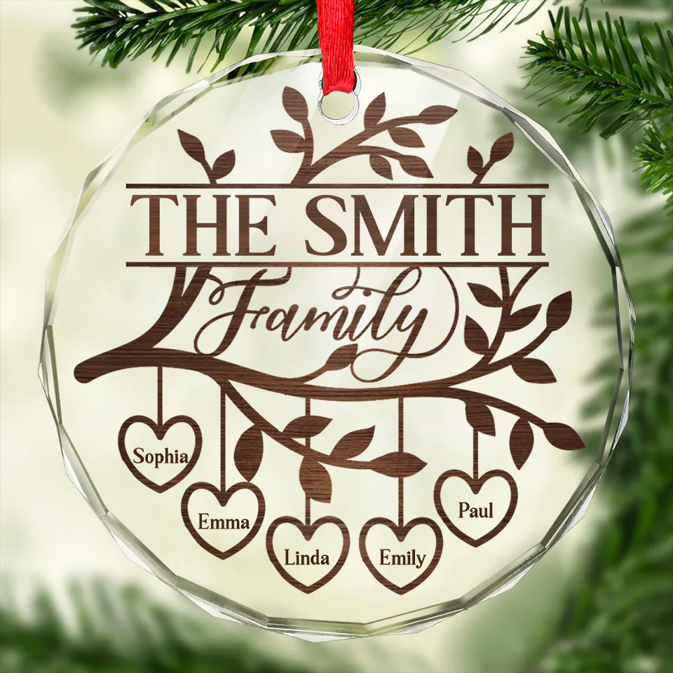 Personalized Family Tree Heart Name Ornament Acrylic Wood Style Christmas Gift for Families-GLO-KXEYD