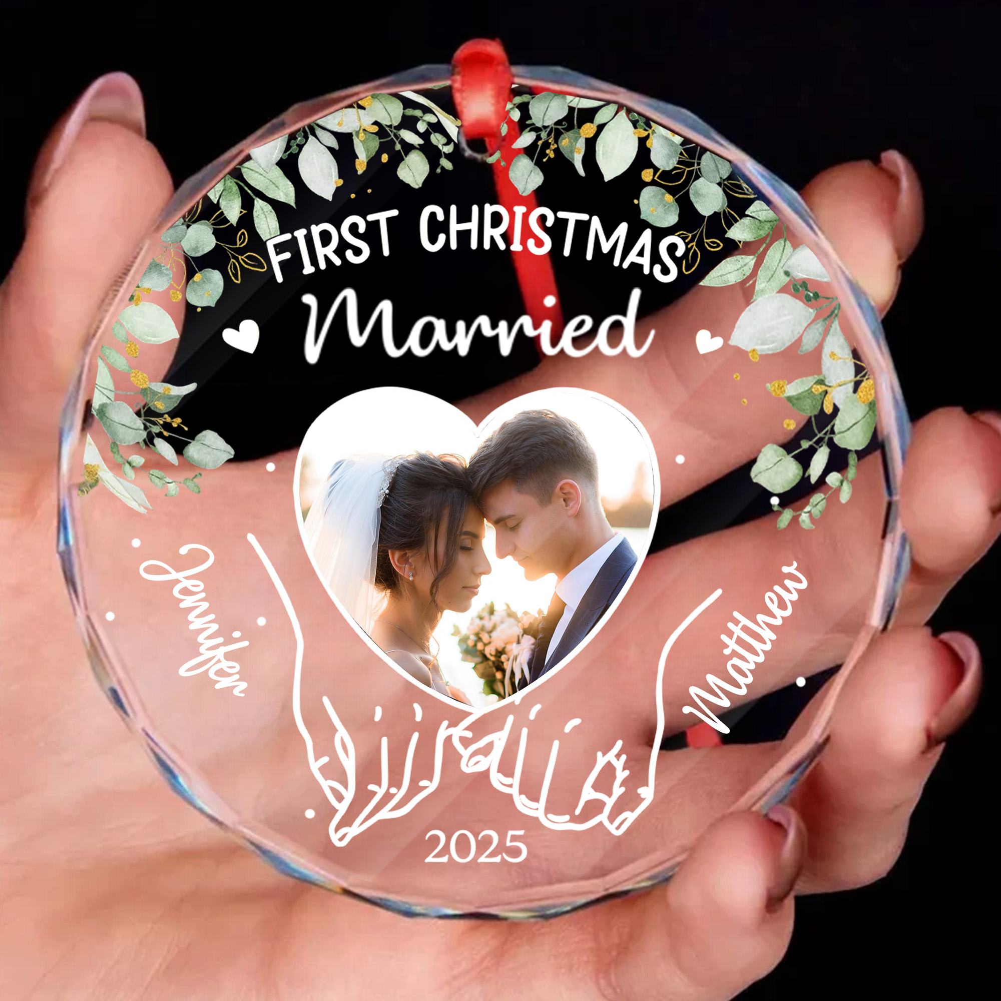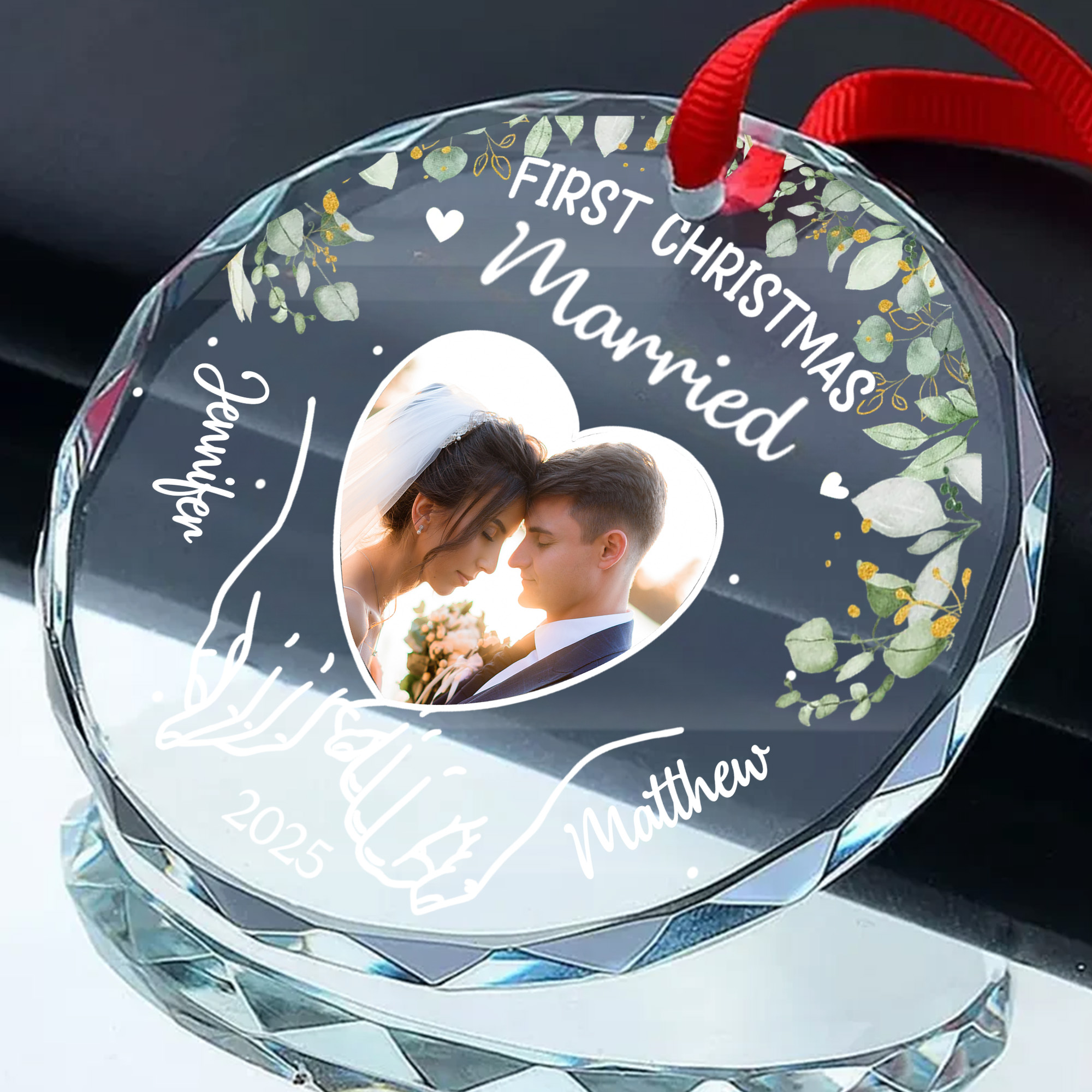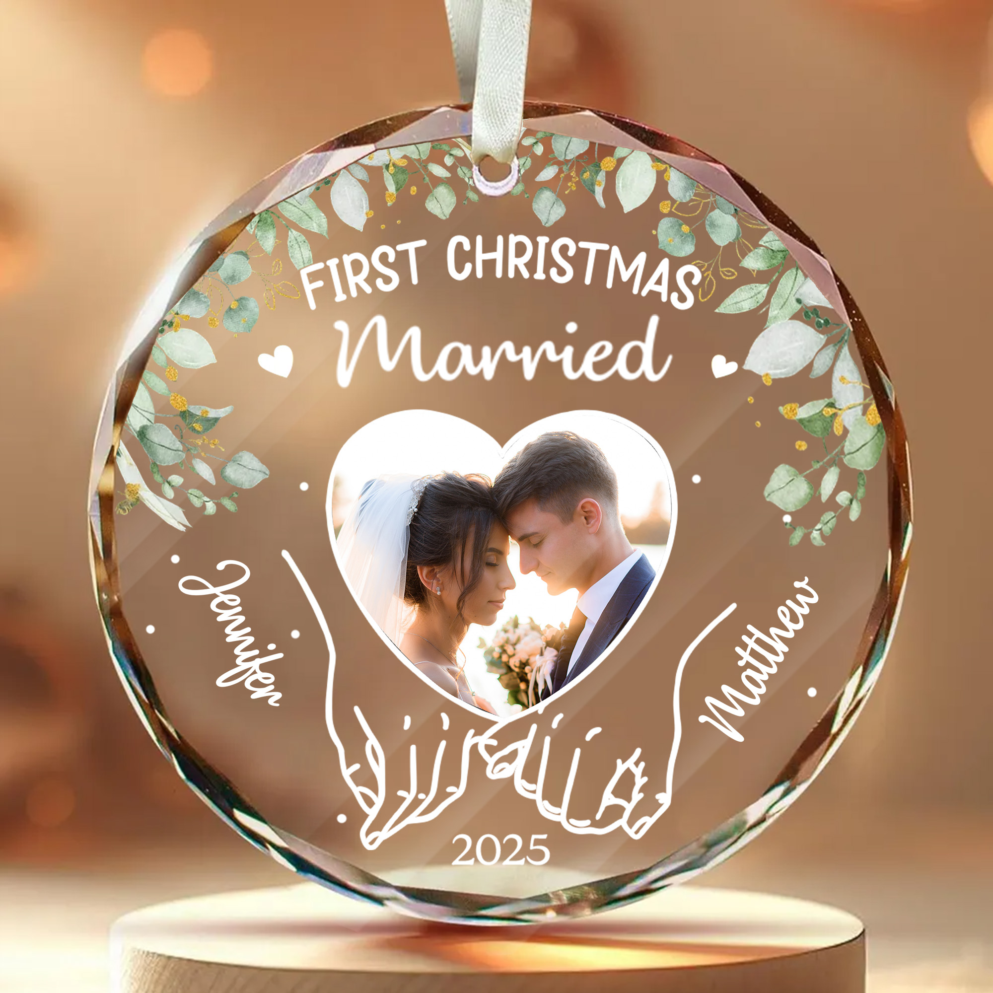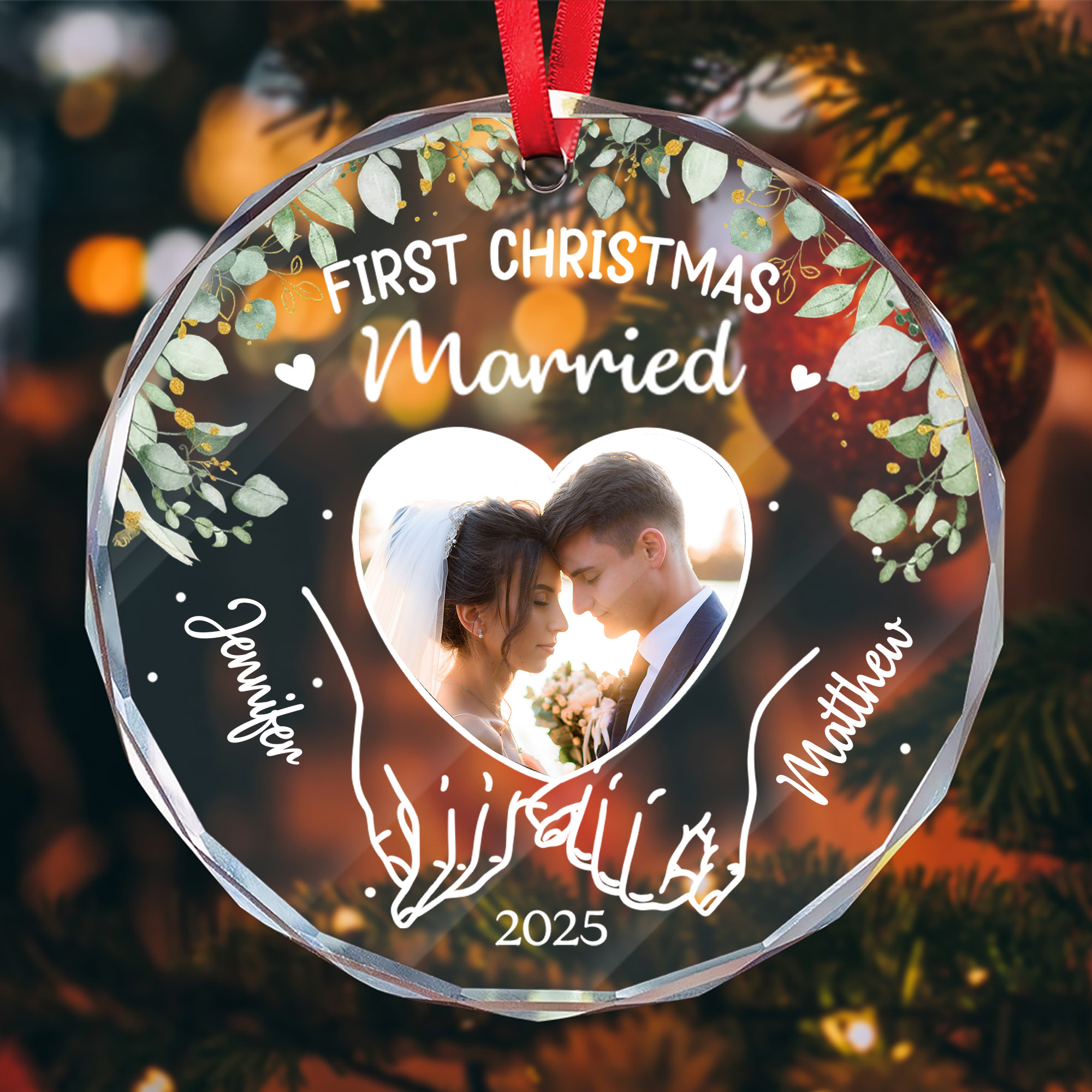 Personalized First Christmas Married Glass Ornament – Custom Engraved Wedding Gift for Couples-GLO-2R0Z3
