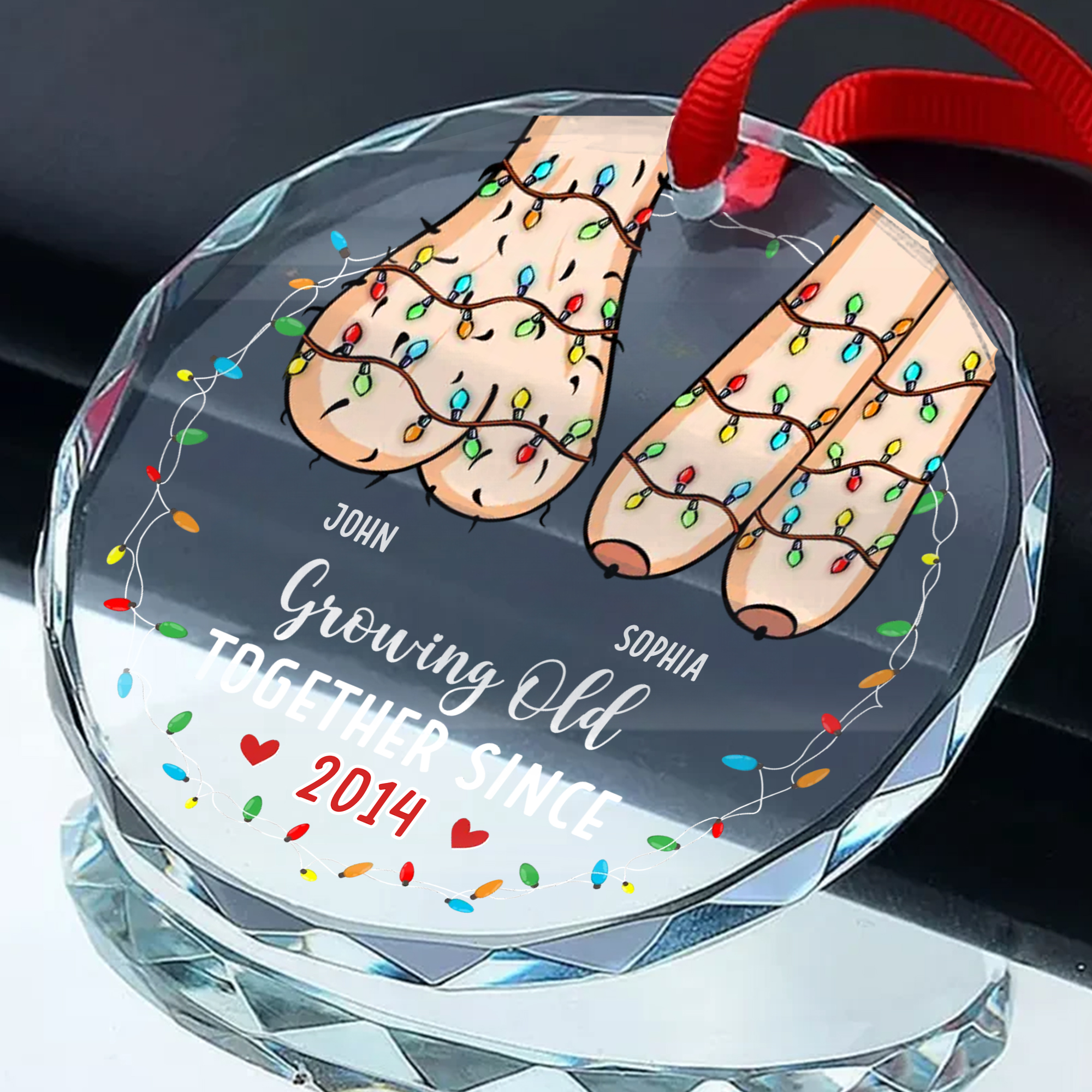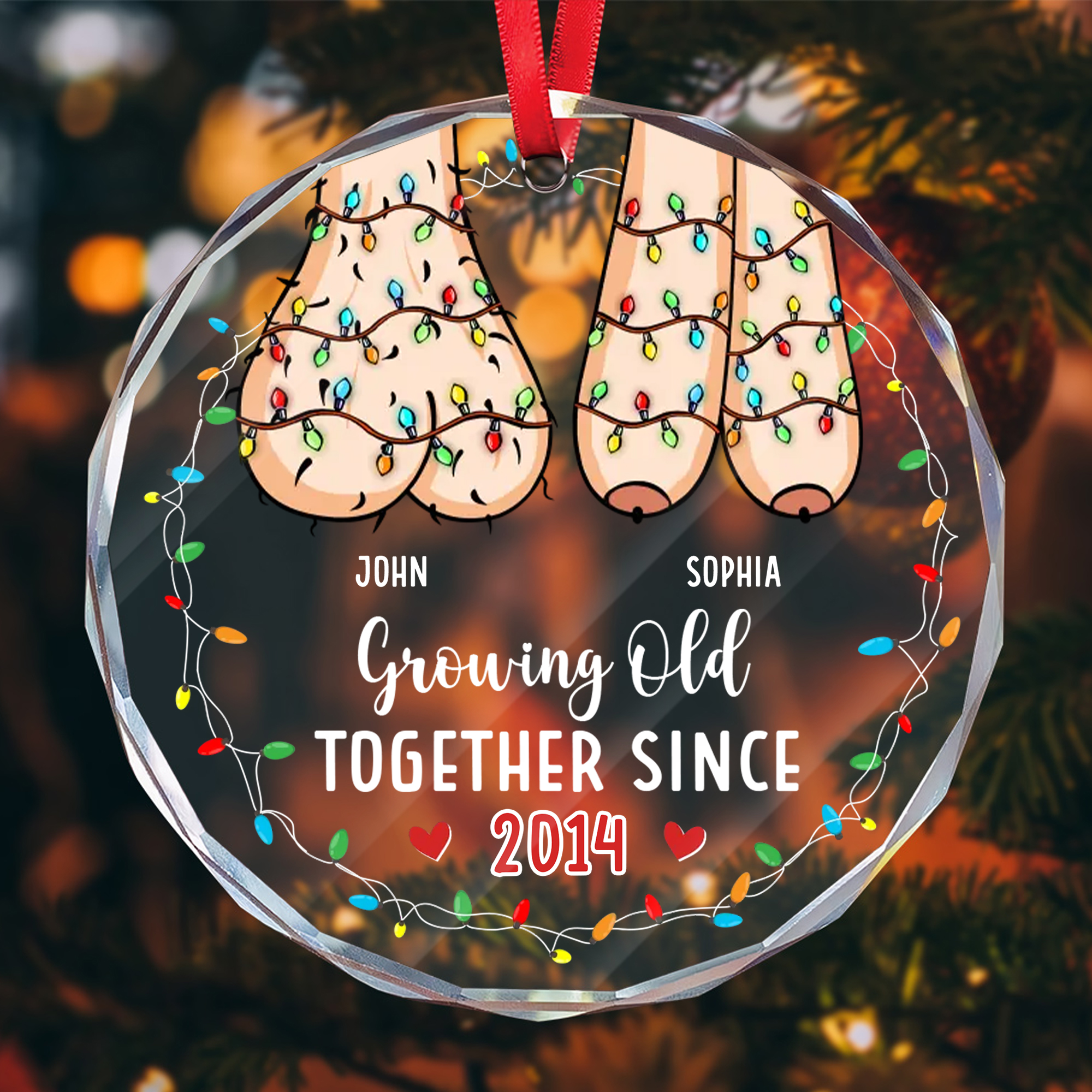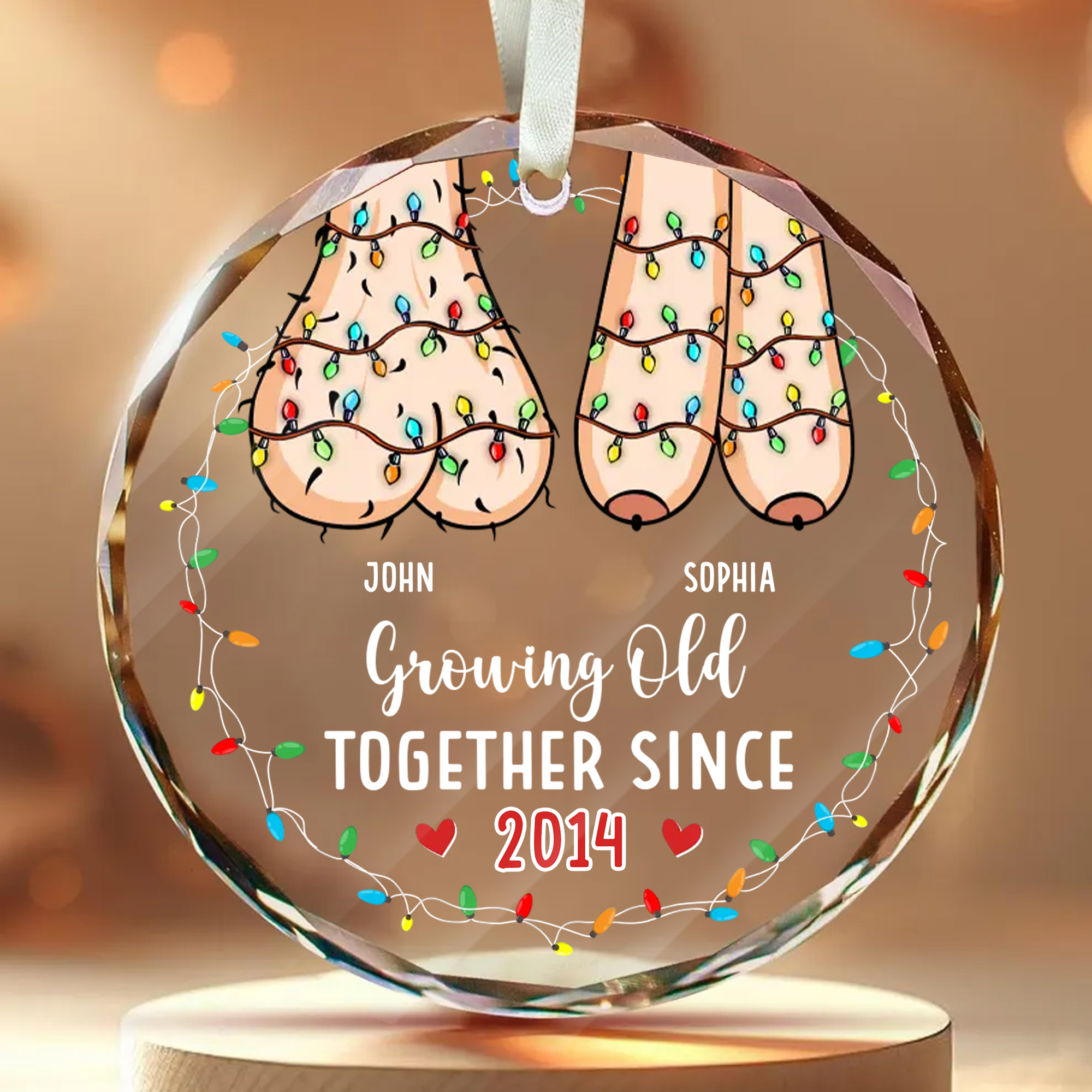 Personalized Funny Couple Christmas Ornament Custom Growing Old Together Glass Gift for Partners-GLO-KMHB3