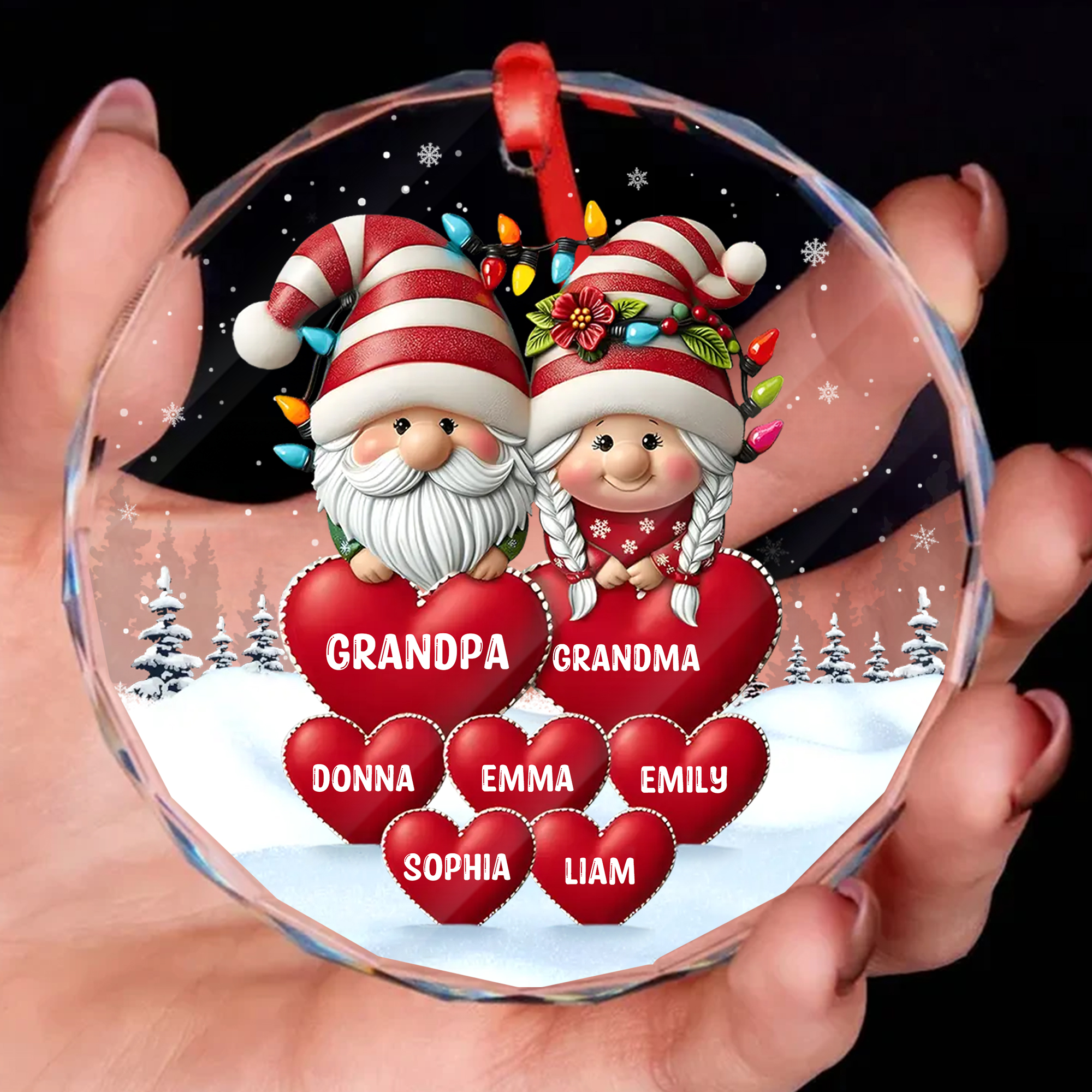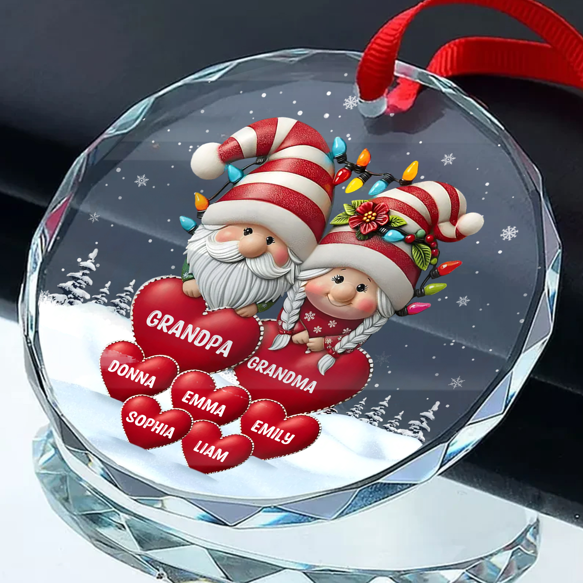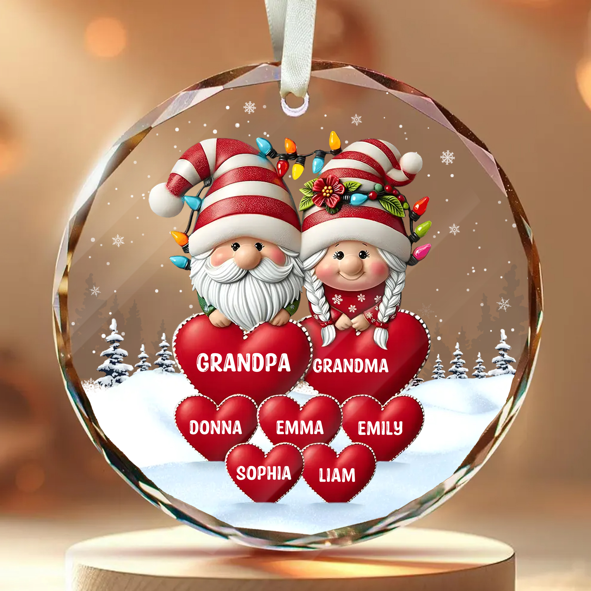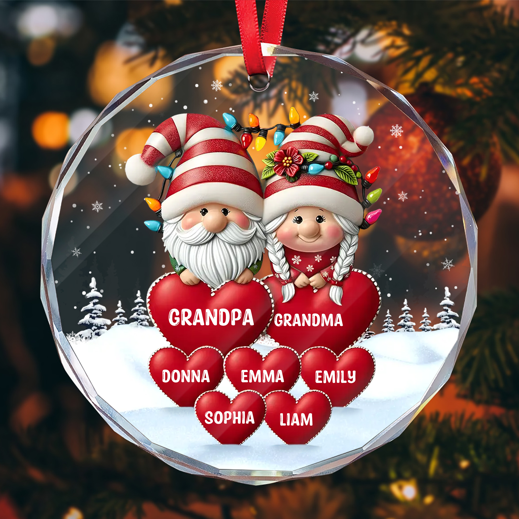 Personalized Gnome Grandpa Grandma Grandkids Names Ornament Acrylic Wood Style Christmas Gift for Grandparents-GLO-AOJE3