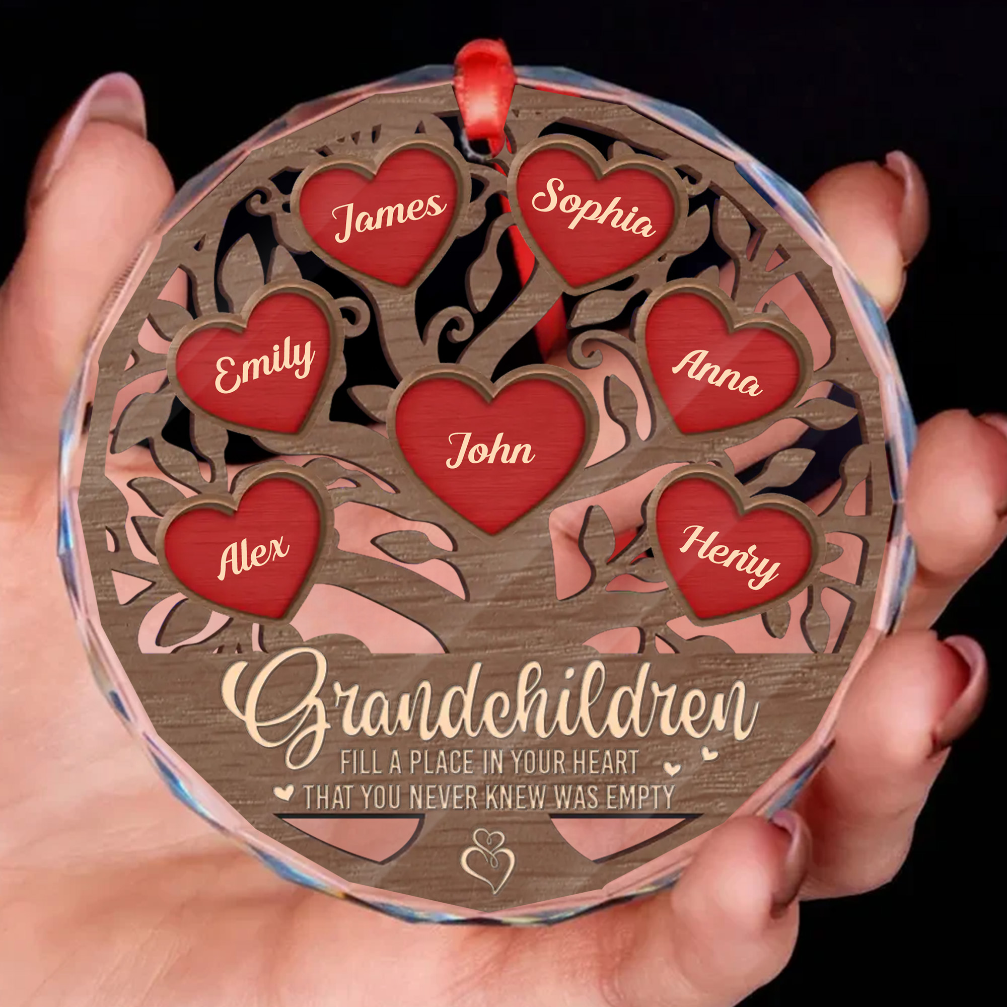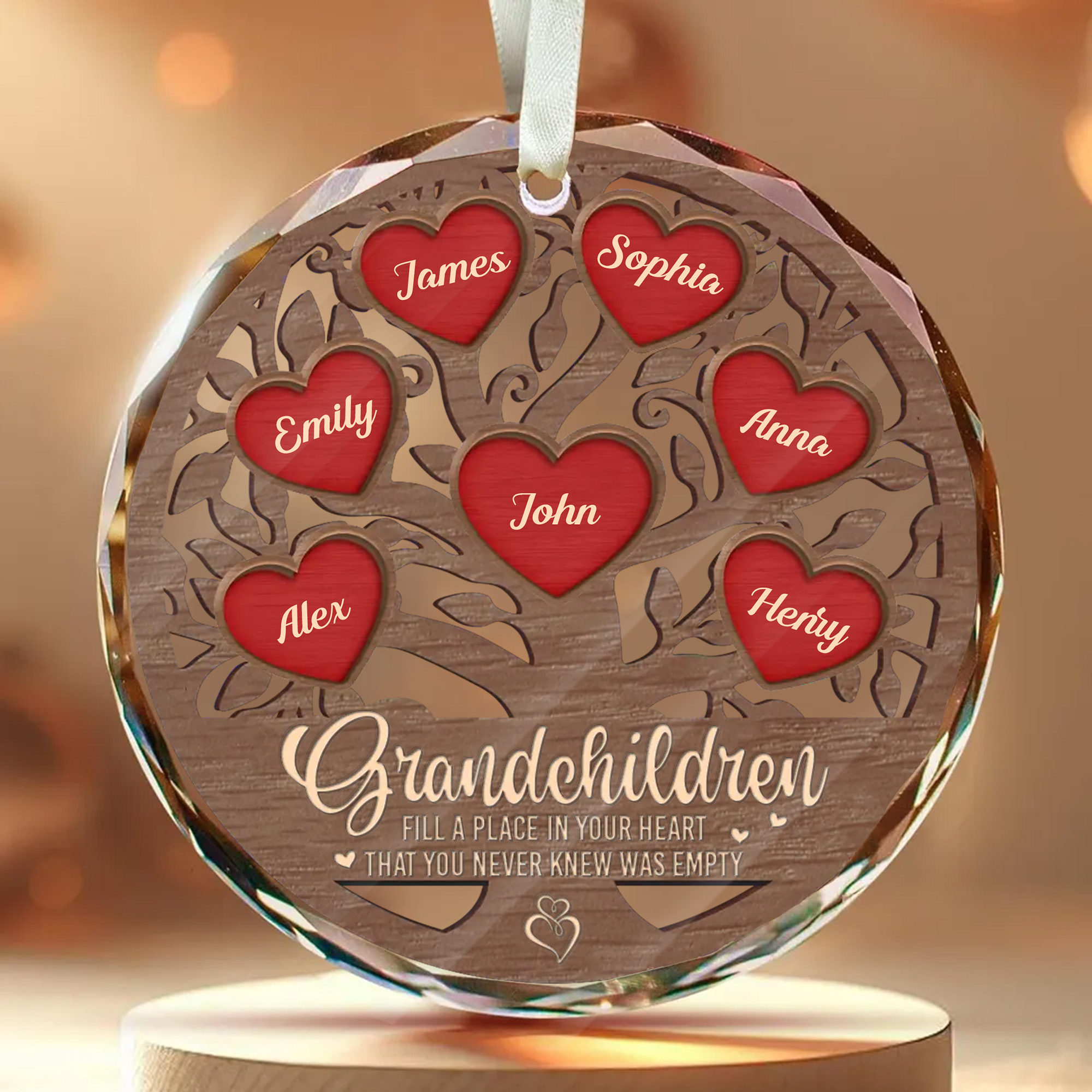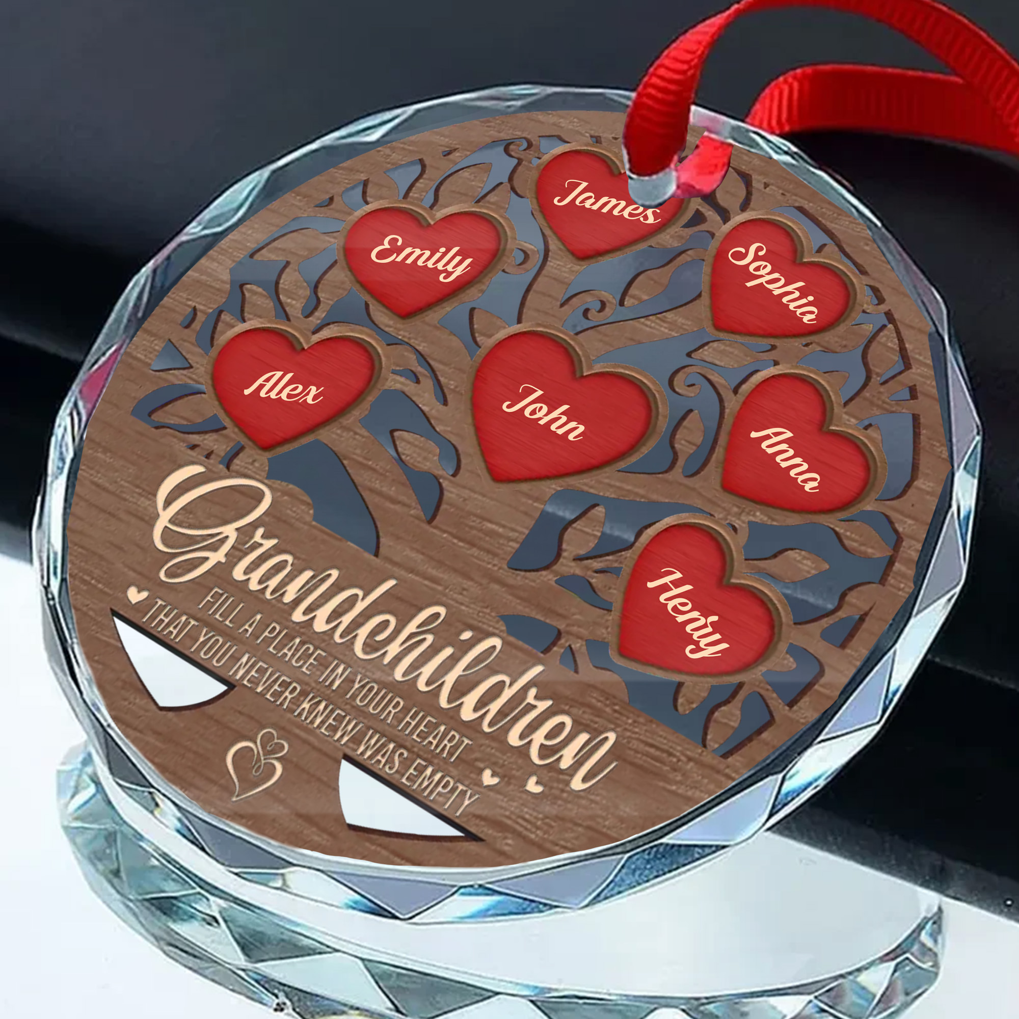 Personalized Grandchildren Heart Ornament – Custom Engraved Family Tree Christmas Gift for Grandparents-GLO-QTFCB