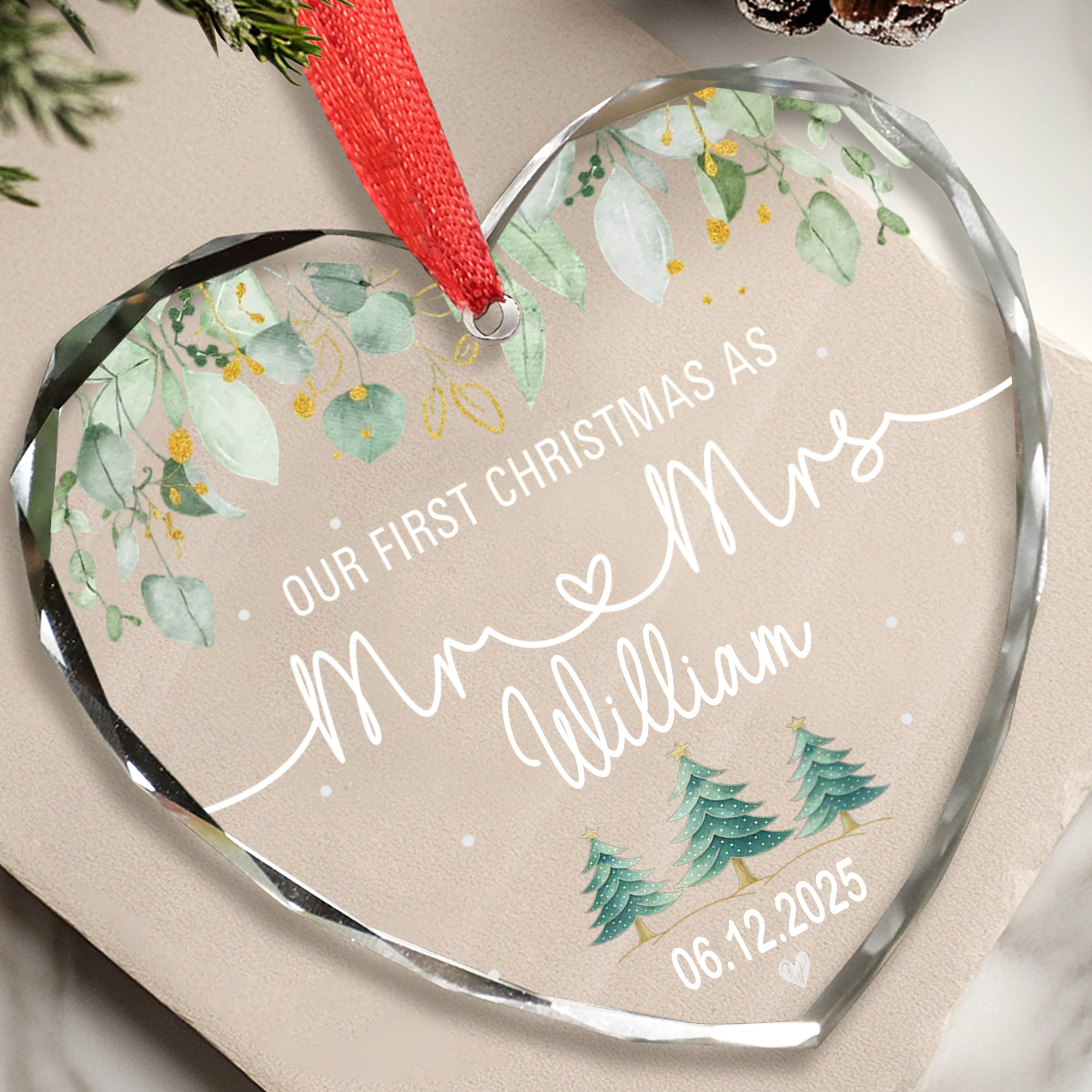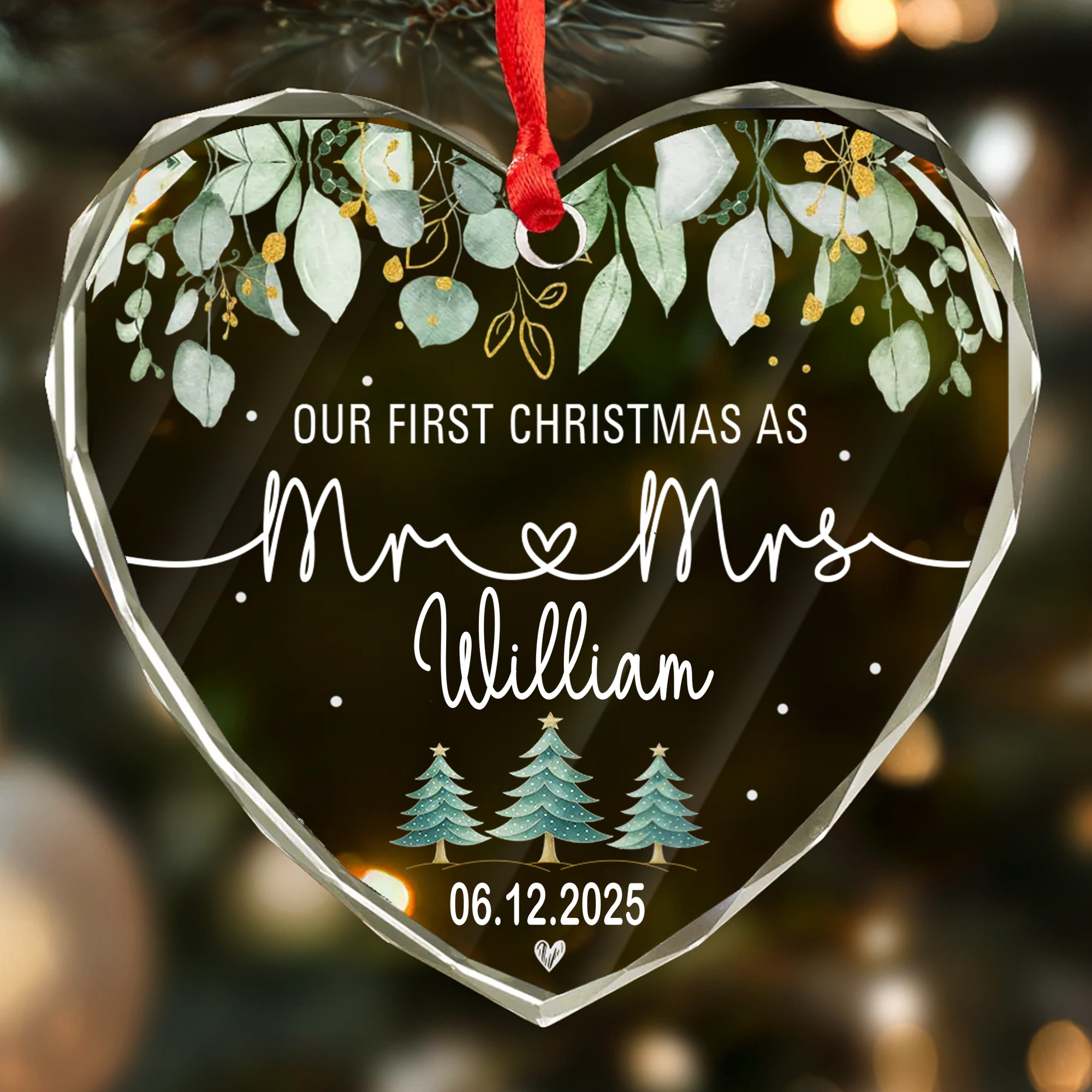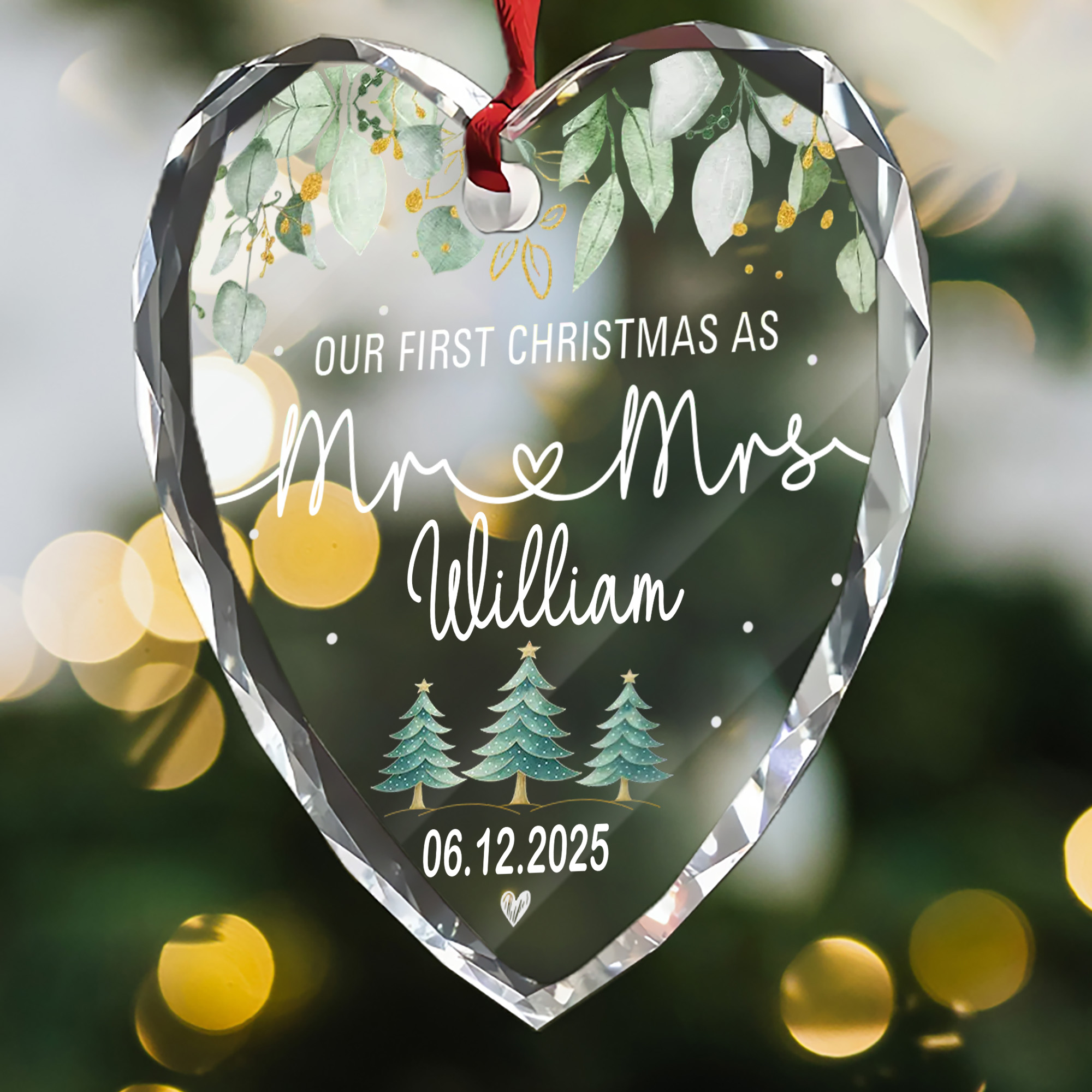 Personalized Mr & Mrs Ornament with Date – Faceted Glass Heart – Our First Christmas Gift for Couples 2025-HGLO-JDOSU