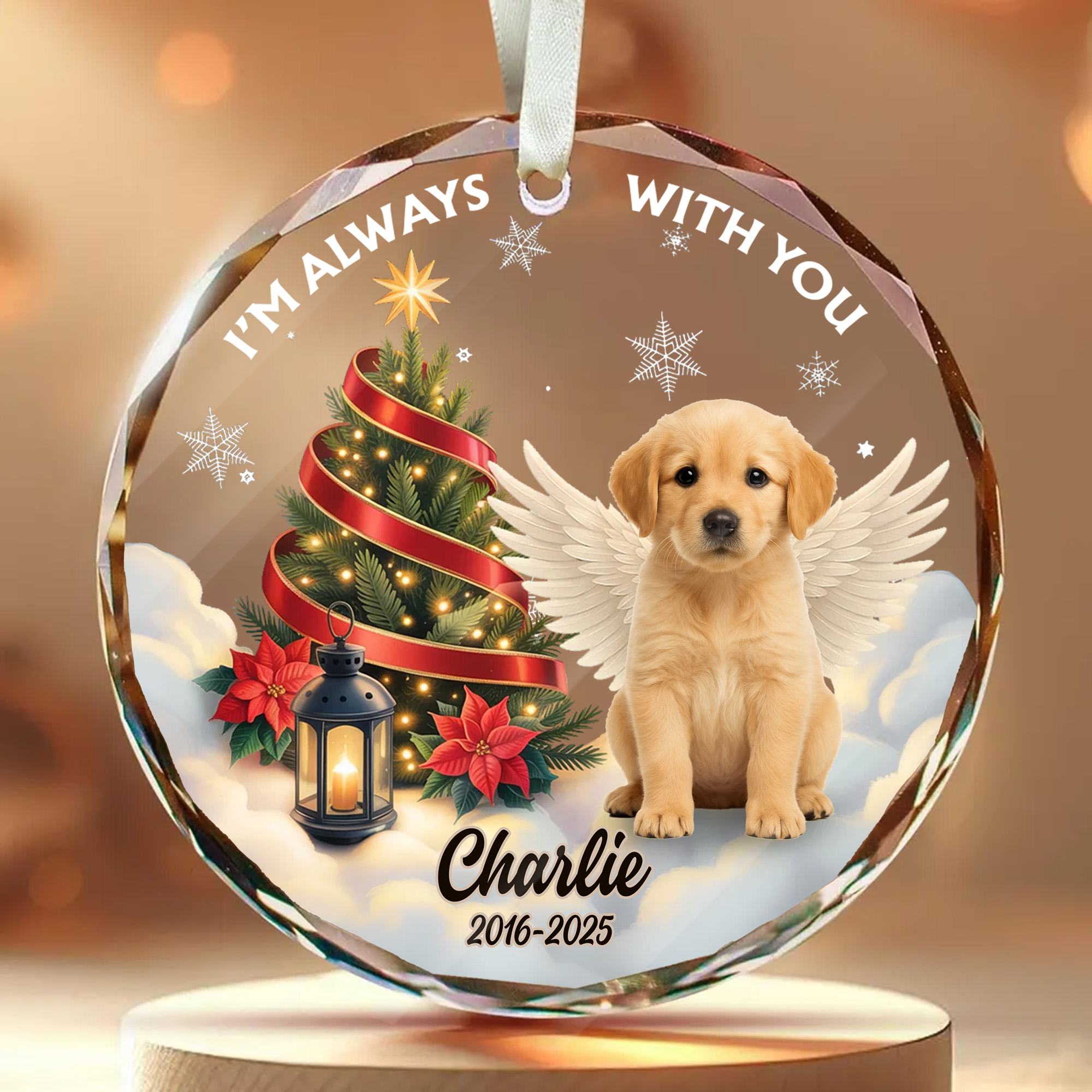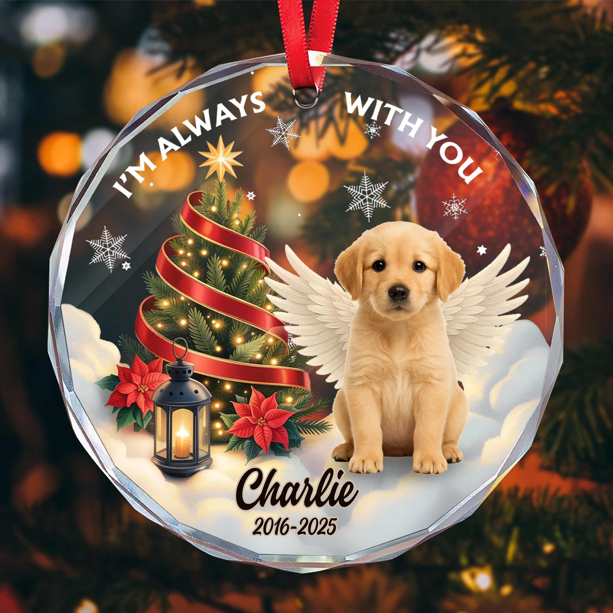 Personalized Pet Memorial Glass Ornament Custom Angel Dog Christmas Keepsake for Grieving Pet Owners-GLO-G9TAE