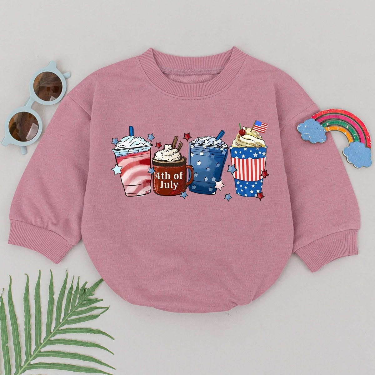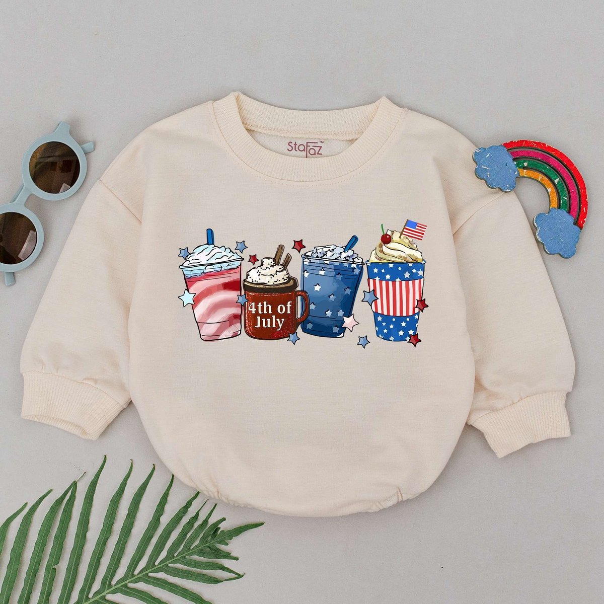 4th of July Coffee Cup Baby Romper Party in the USA Bodysuit Independence Day Outfit for Newborn Gir