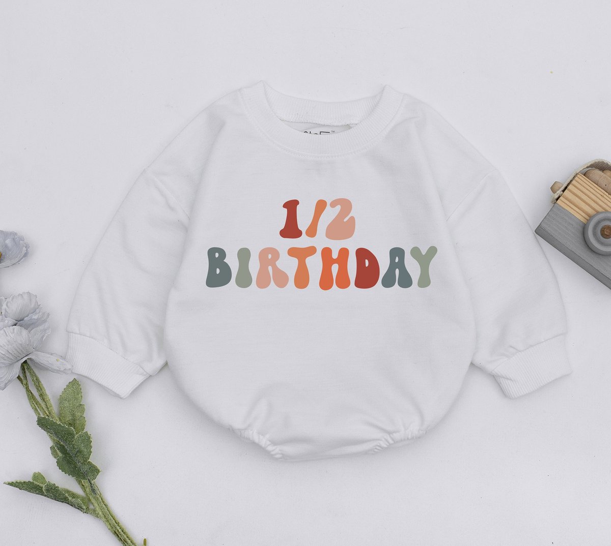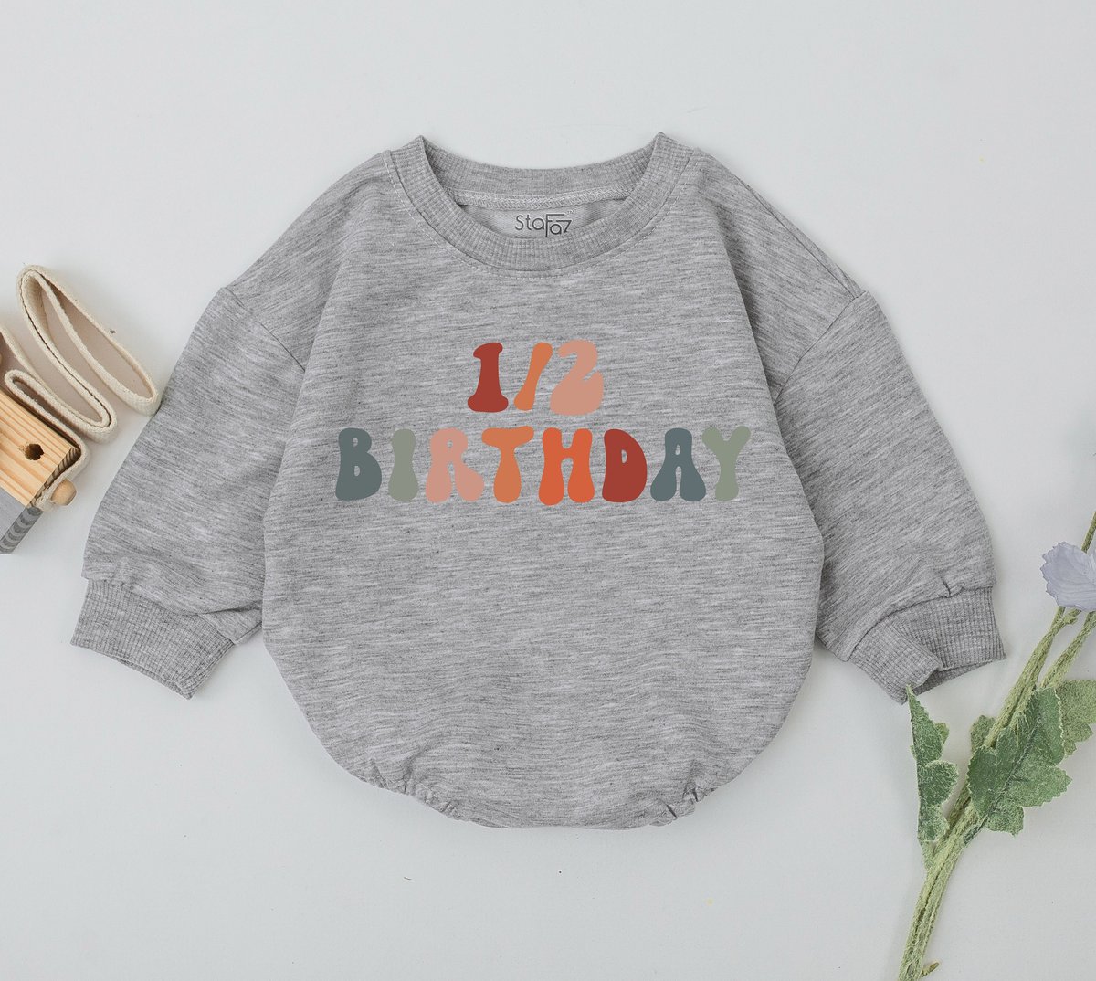 12 Birthday Romper Half Way To One Baby Romper 6 Months Birthday Gift Half Birthday Outfit Newborn F