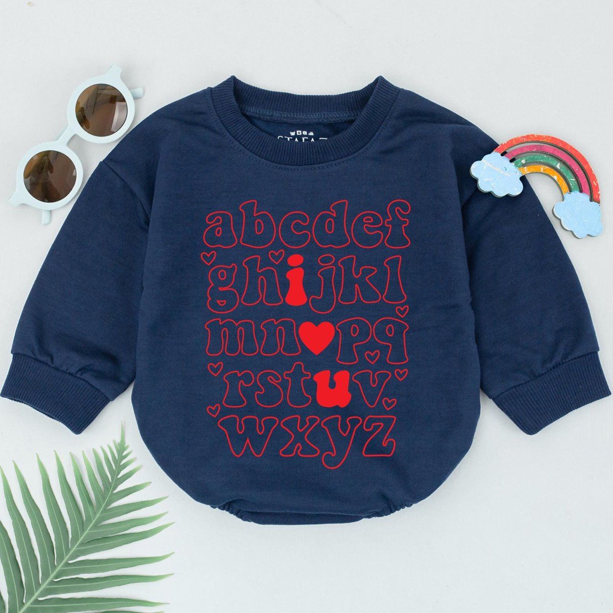 Alphabet I Love You Valentine Romper Little Valentine Bodysuit First Valentine’s Day Romper 1st Val