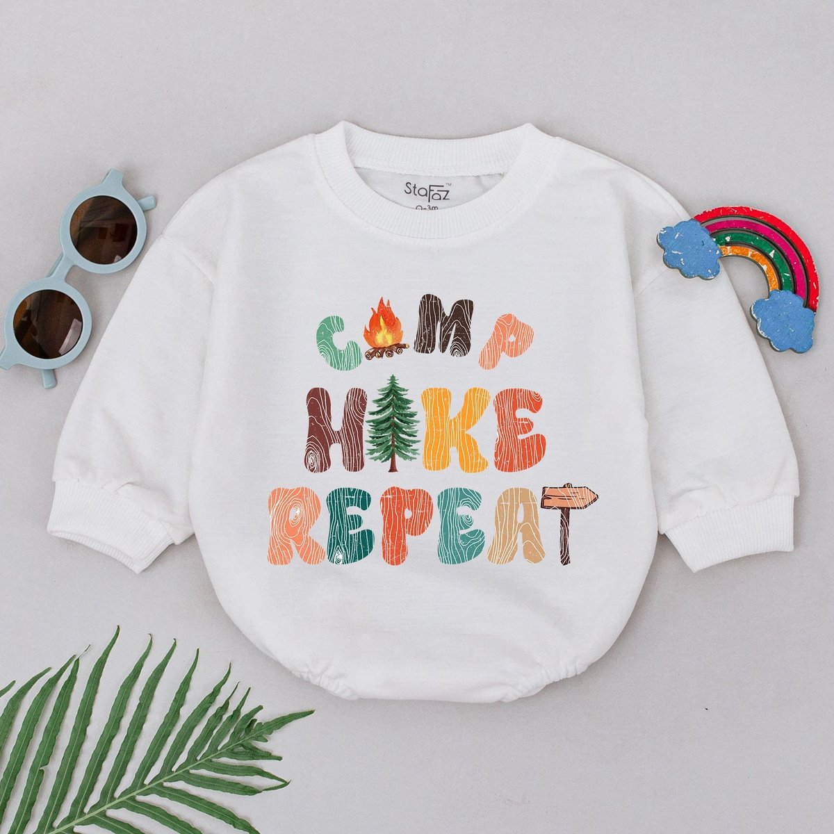 Camp Hike Repeat Romper Retro Camping Baby Romper Adventure Baby Bodysuit Baby Shower Gift Pregnancy