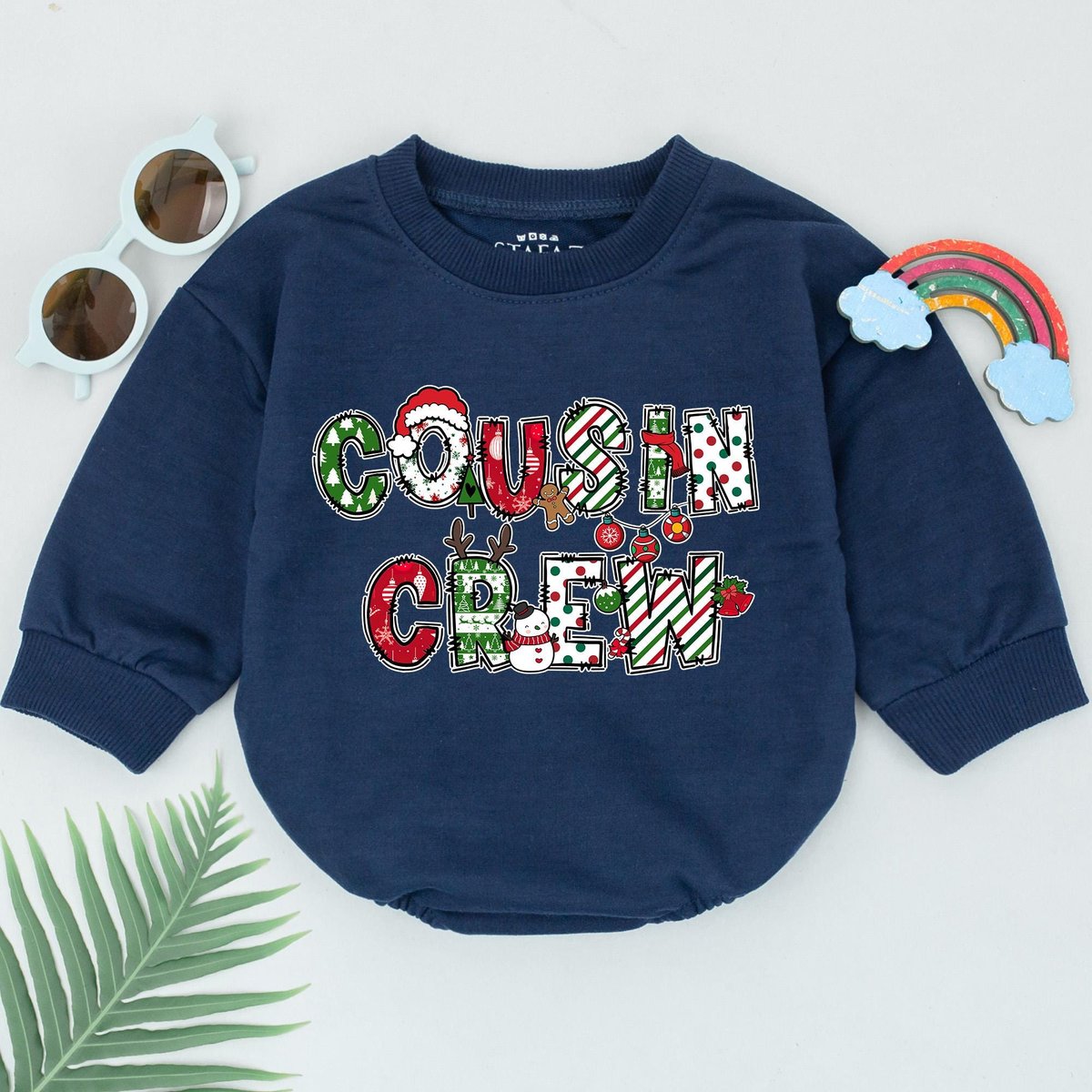 Cousins Crew Christmas Romper Cousin Besties Outfit Retro Cousin Crew Bodysuit 1st Christmas Romper