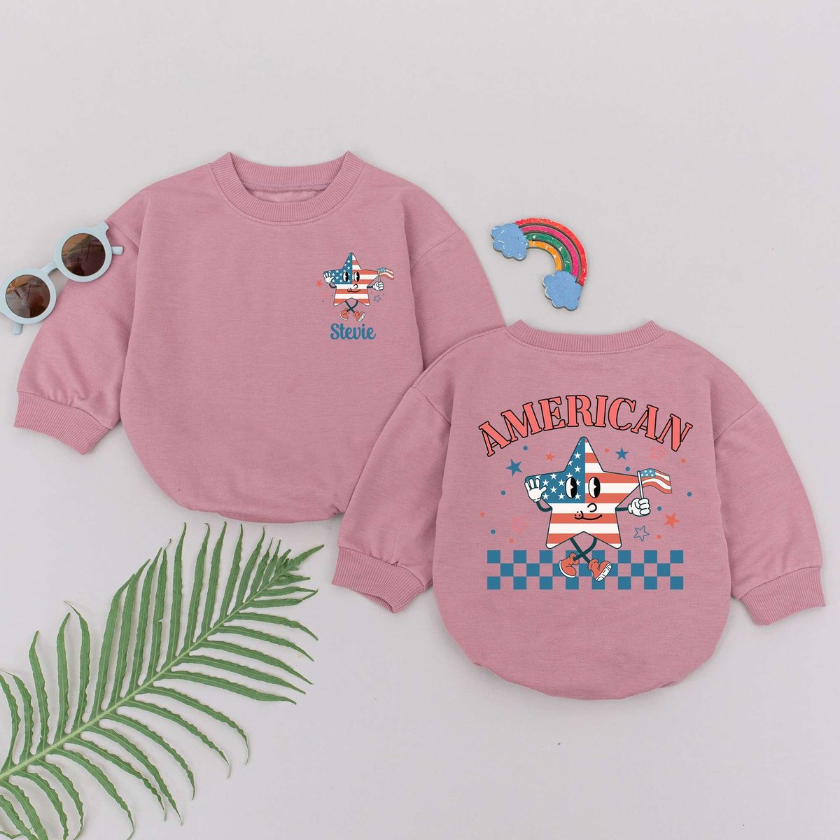 Custom Name American Babe Romper 4th of July Baby Bodysuit First Independence Day Outfit Personalize